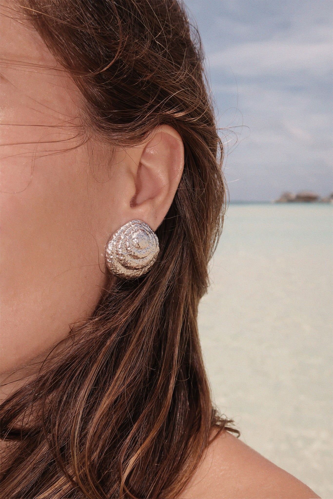 The Barbados Earrings blend timeless sophistication with modern elegance, featuring a refined, textured shell design crafted from rhodium-plated brass. Lightweight and effortlessly chic, they are perfect for adding a touch of elevated style to any look. Designed with a comfortable stud backing, these earrings are a must-have for pierced ears.