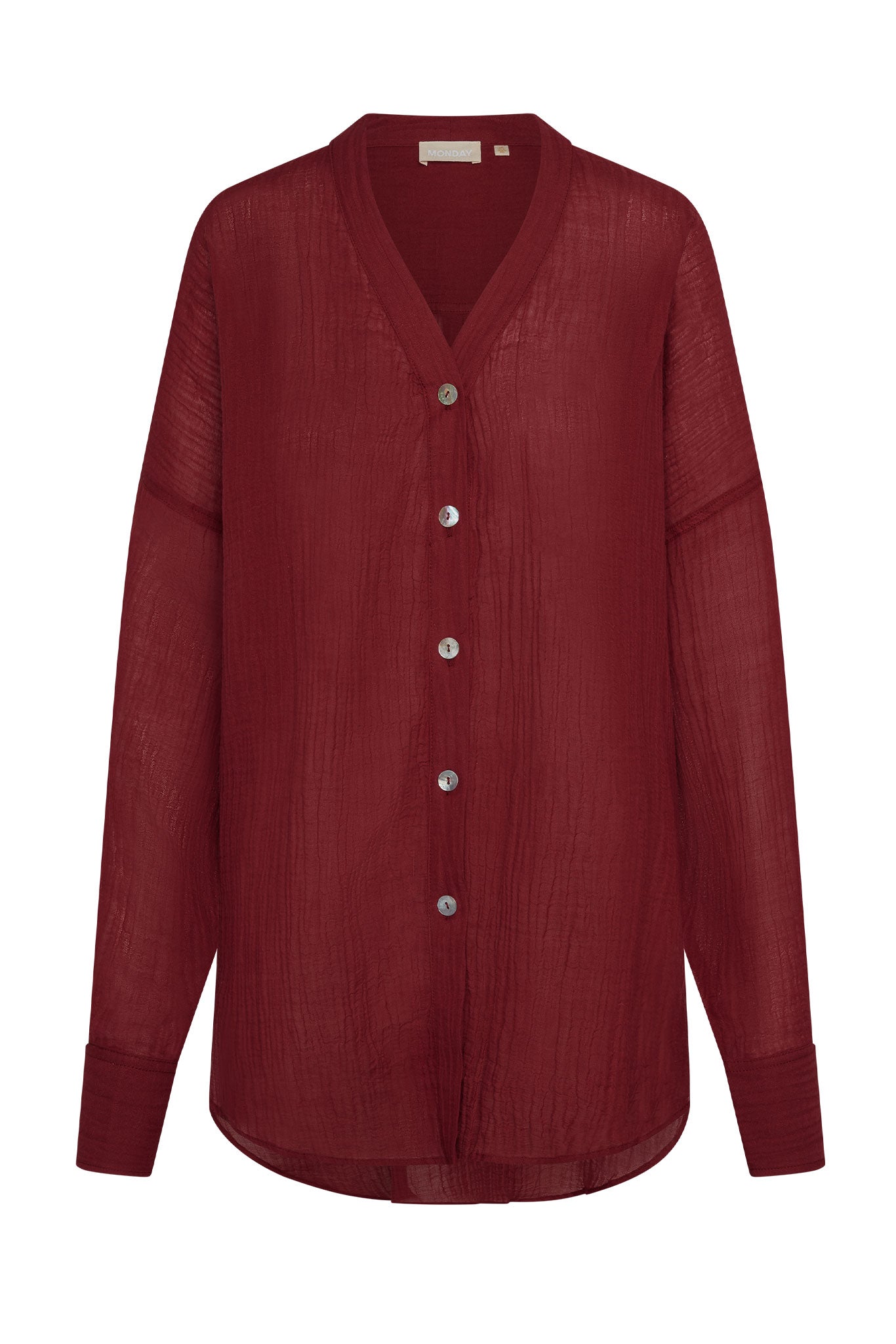 The ultimate beach to bar look can be achieved in the Barcelona Tunic. With an airy oversized fit, this transitional piece can be worn open, over your favorite swimwear or tied at the front with cute pants. Complete with side slits, flowy sleeves and center front seashell buttons.