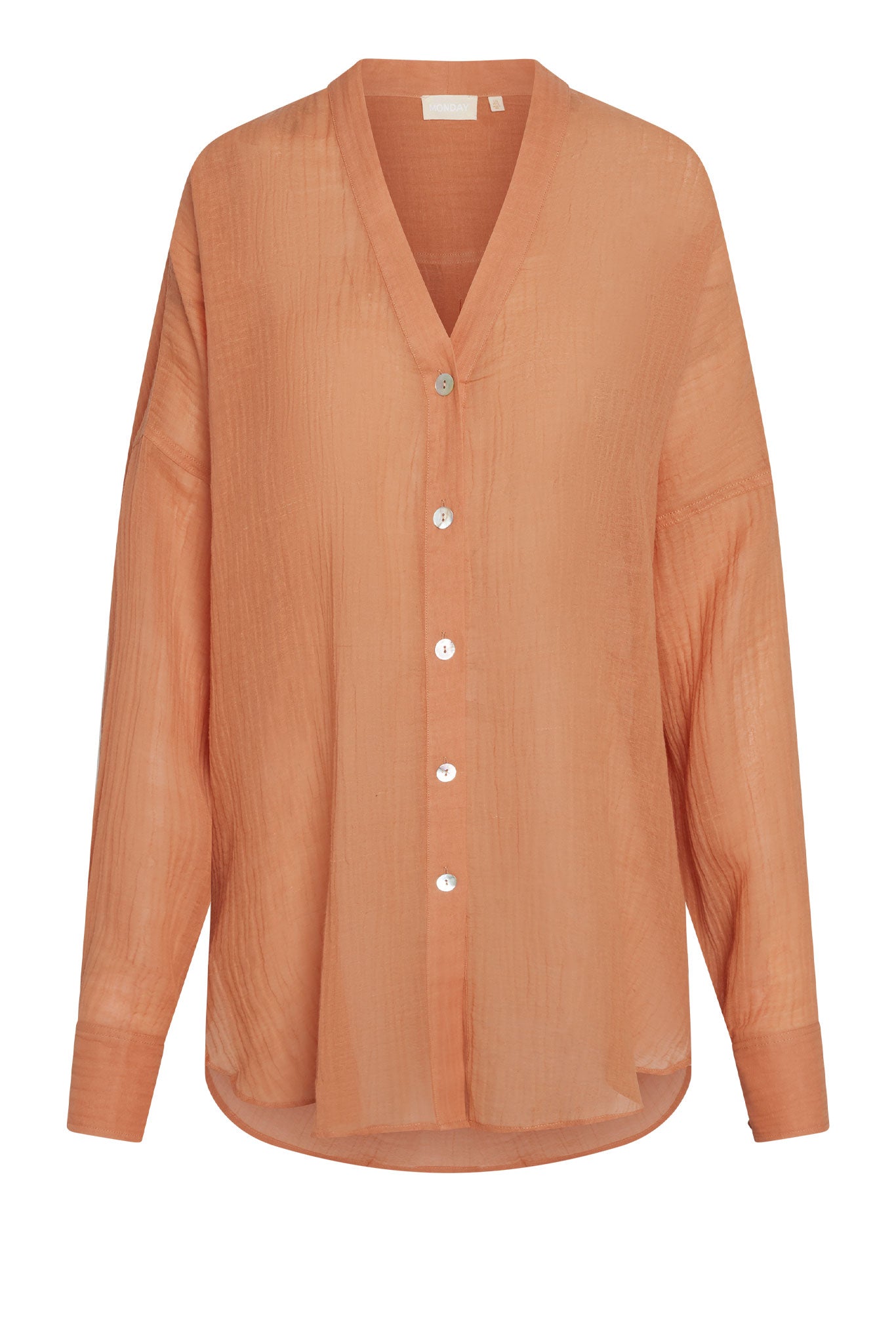 The ultimate beach to bar look can be achieved in the Barcelona Tunic. With an airy oversized fit, this transitional piece can be worn open, over your favorite swimwear or tied at the front with cute pants. Complete with side slits, flowy sleeves and center front seashell buttons.