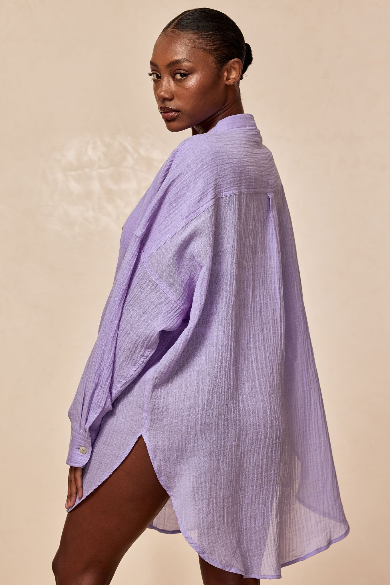 The ultimate beach to bar look can be achieved in the Barcelona Tunic. With an airy oversized fit, this transitional piece can be worn open, over your favorite swimwear or tied at the front with cute pants. Complete with side slits, flowy sleeves and center front seashell buttons.