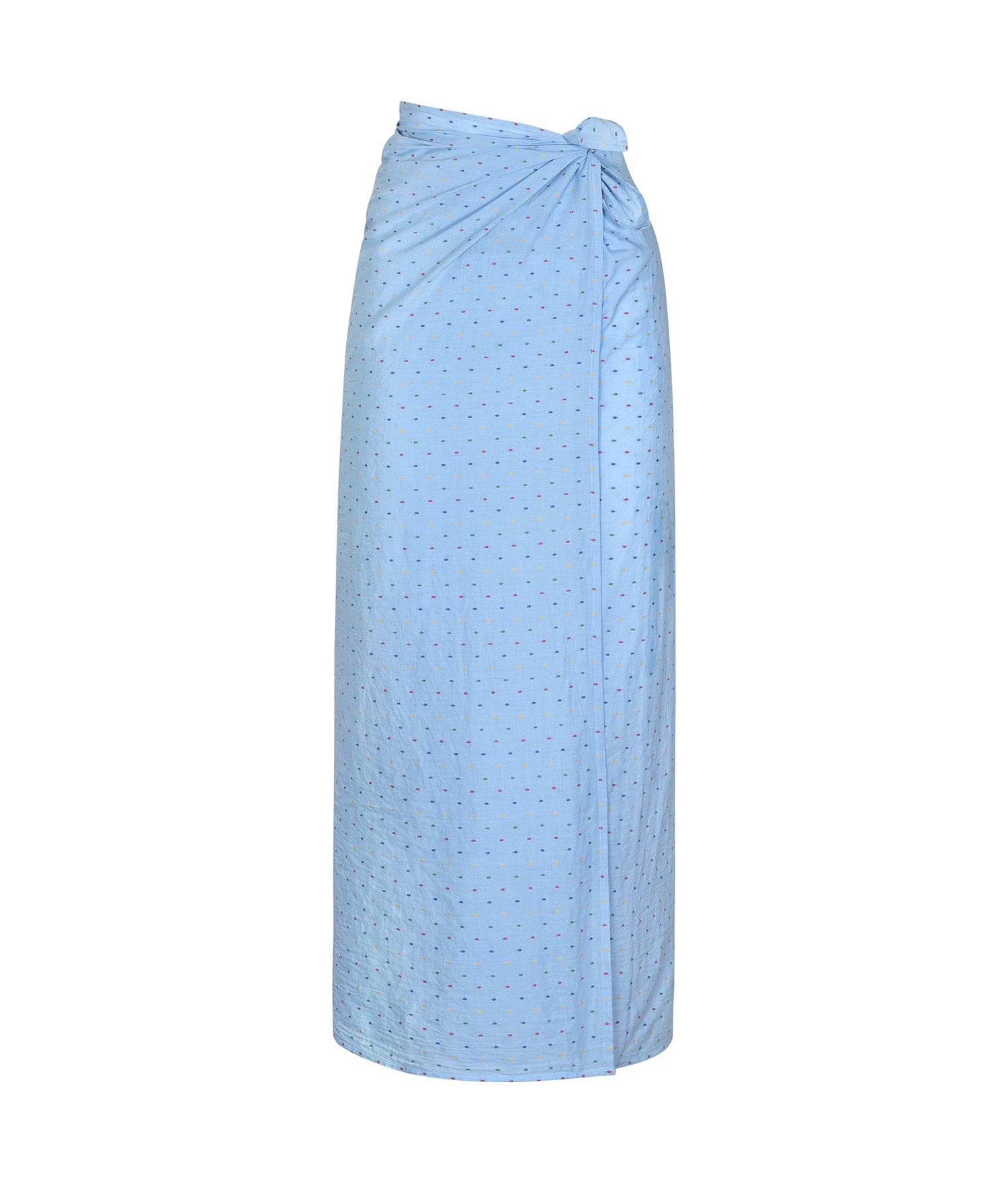 The Blueberry Swiss Sarong, made from lightweight cotton, is a versatile beach cover-up that can be worn as a skirt, dress, or scarf. Stay stylish and comfortable with this easy-to-pack summer essential.