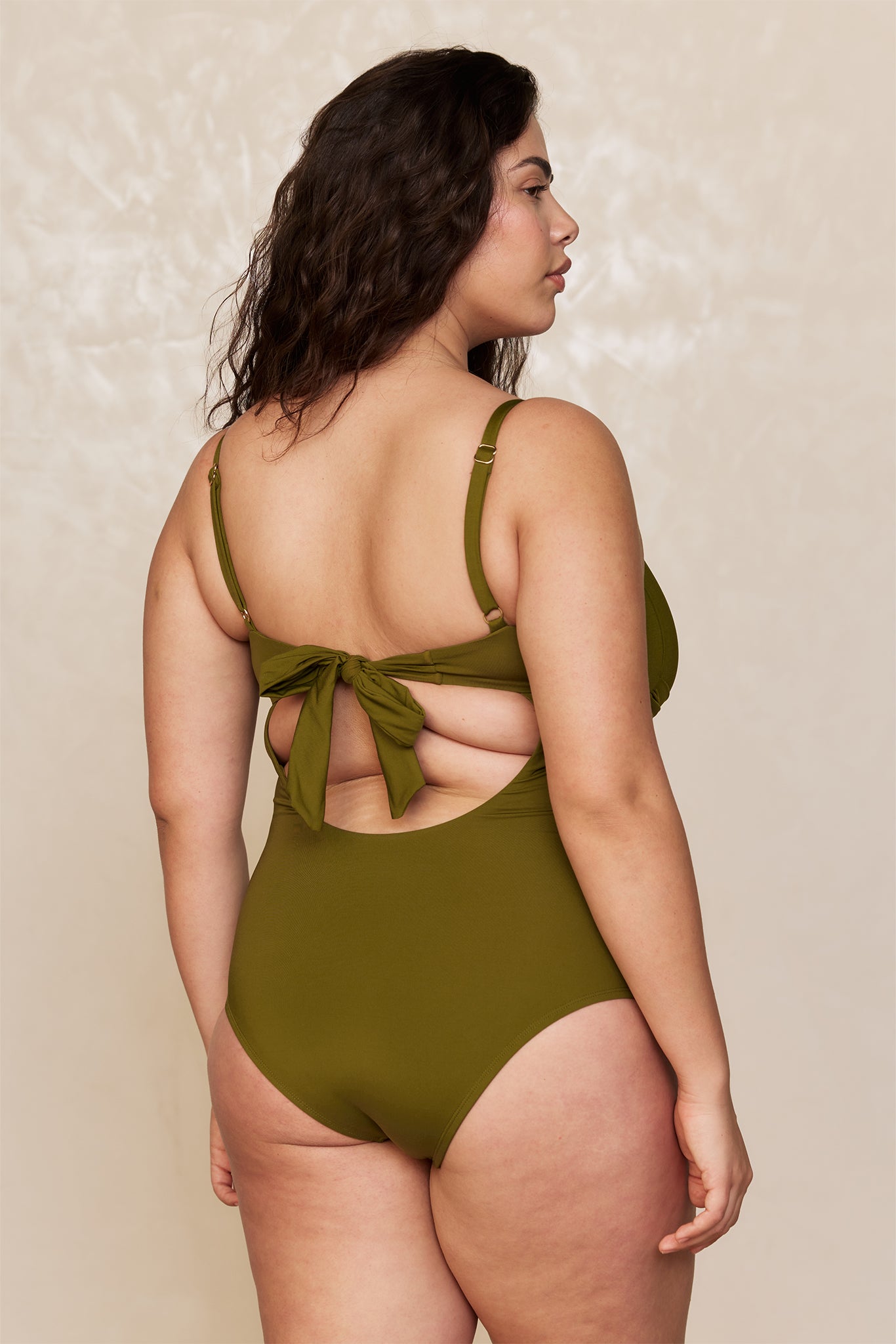 The Bordeaux One Piece you know and love, now with a refined silhouette featuring full coverage and a low-leg cut for an extra touch of elegance. With a flattering cross-over neckline, adjustable shoulder straps, and a back tie closure, it’s designed for a secure, customized fit. Timeless, sophisticated, and effortlessly wearable—this is Bordeaux, redefined.
