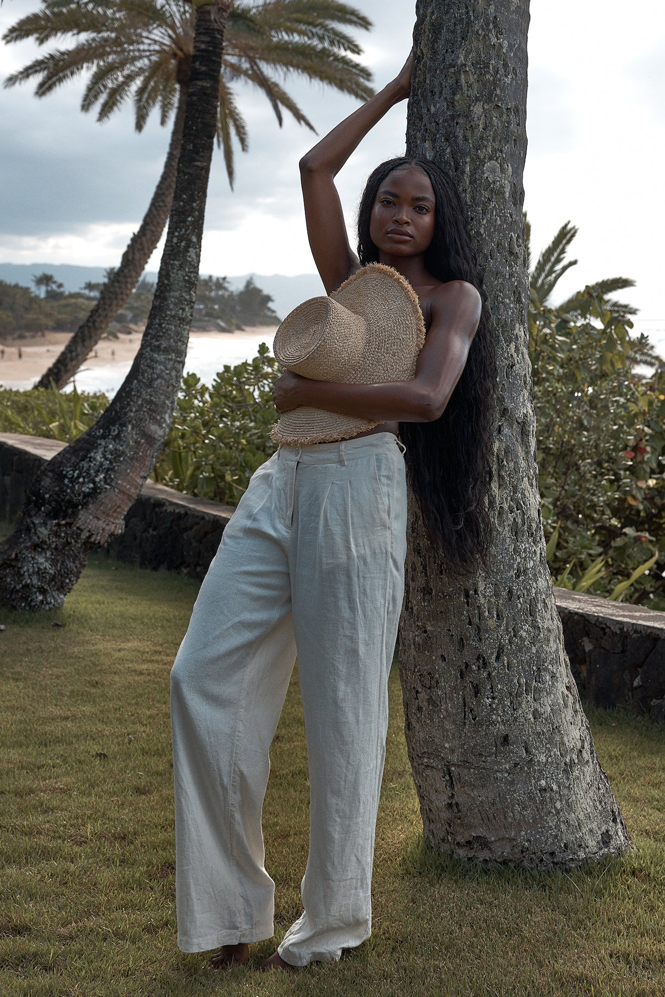 Introducing the epitome of seaside sophistication: The Casablanca Pant. Crafted with a breathable linen blend, this trouser offers a relaxed fit that flows with every ocean breeze. Featuring front pleats and side pockets, this pant adds the perfect touch of practicality to its chic silhouette. Pair with the Sicily Shirt for a post-tan look.