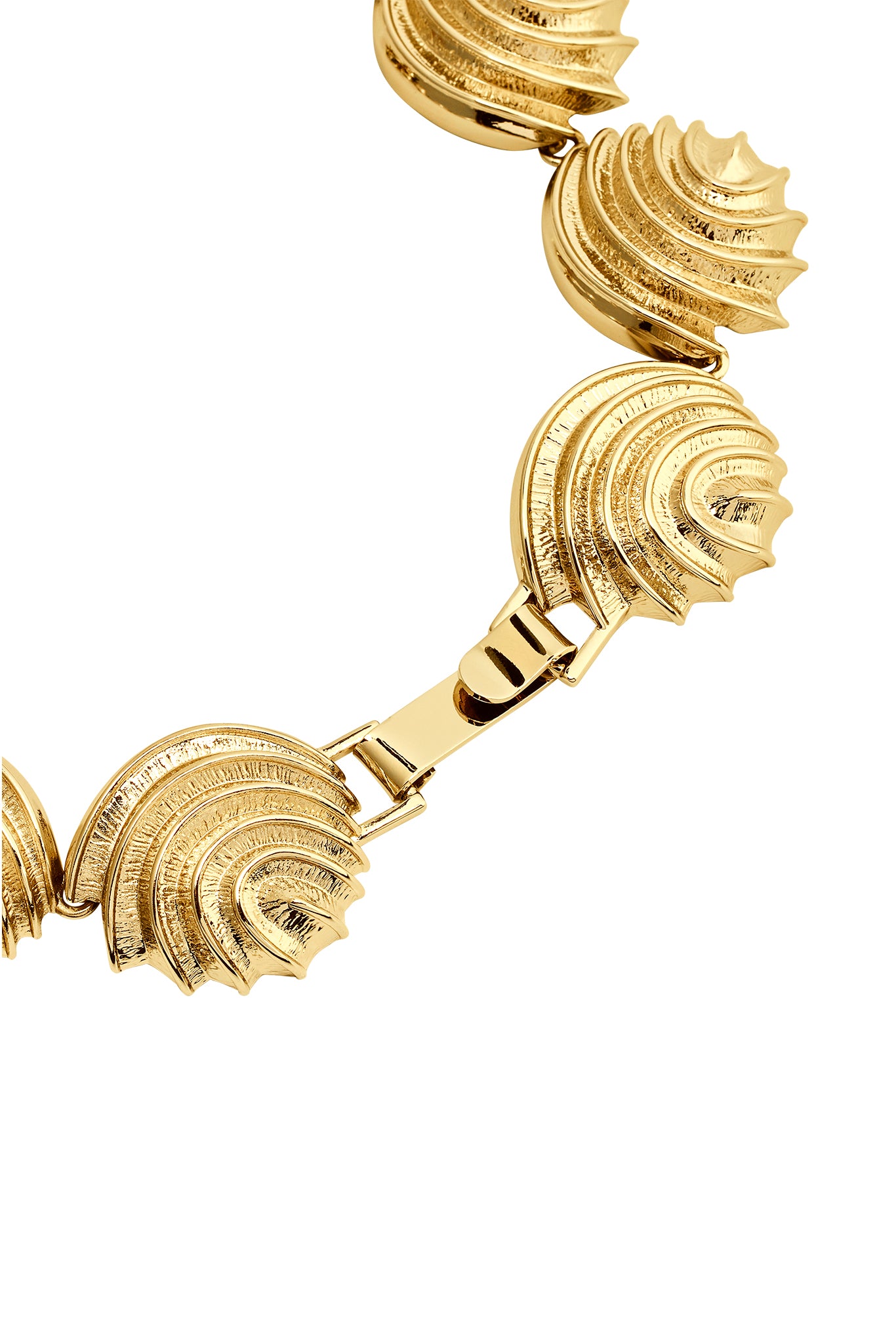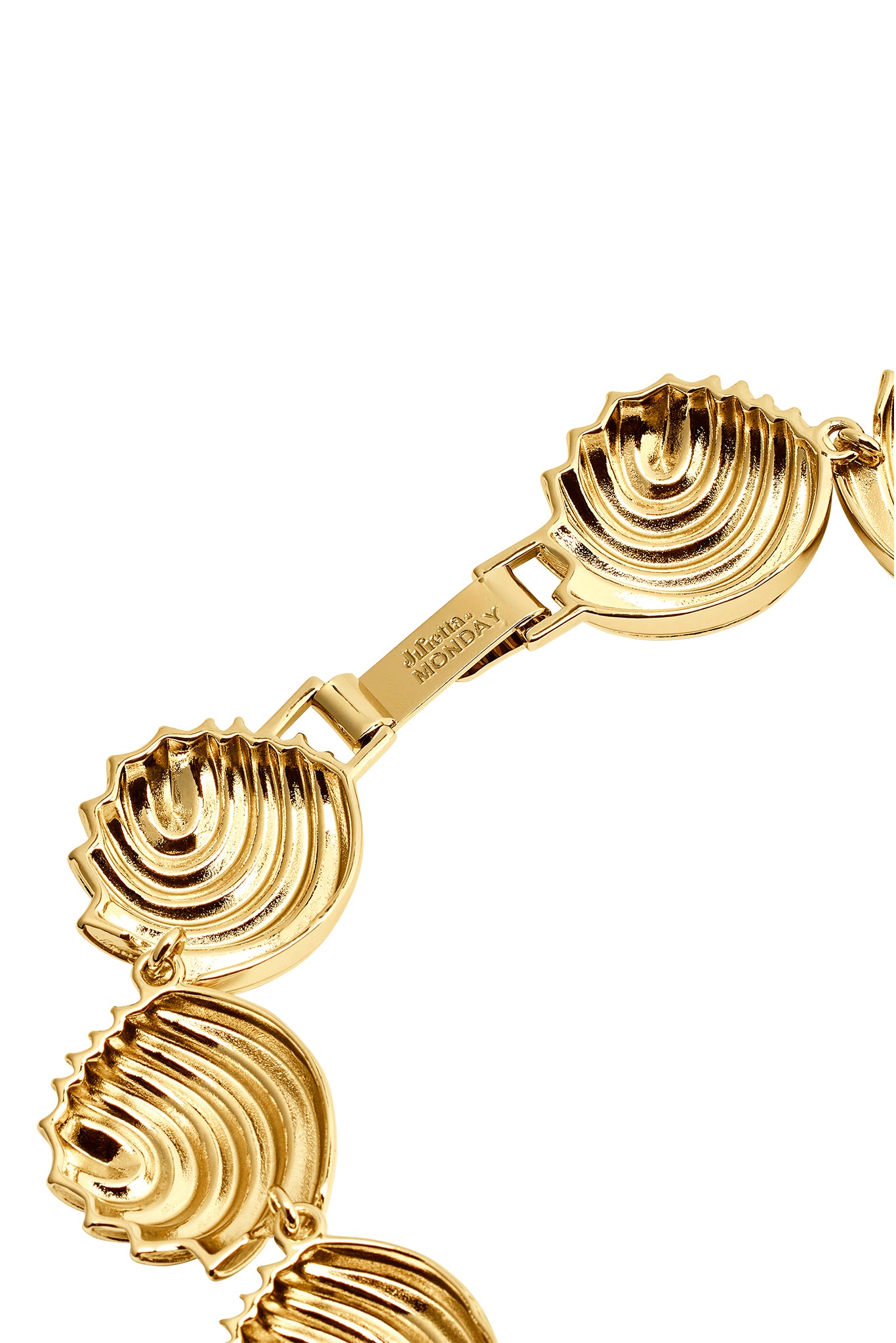 The Cayman Necklace is a refined embodiment of coastal sophistication. Crafted from 18K gold-plated brass, its sculptural shell design captures the essence of seaside elegance. Measuring 17 inches in length, it rests gracefully at the collarbone, while a sleek hook clasp ensures effortless wear. Perfect for elevating any ensemble, this timeless piece transitions seamlessly from day to night, making it a true statement of understated luxury.