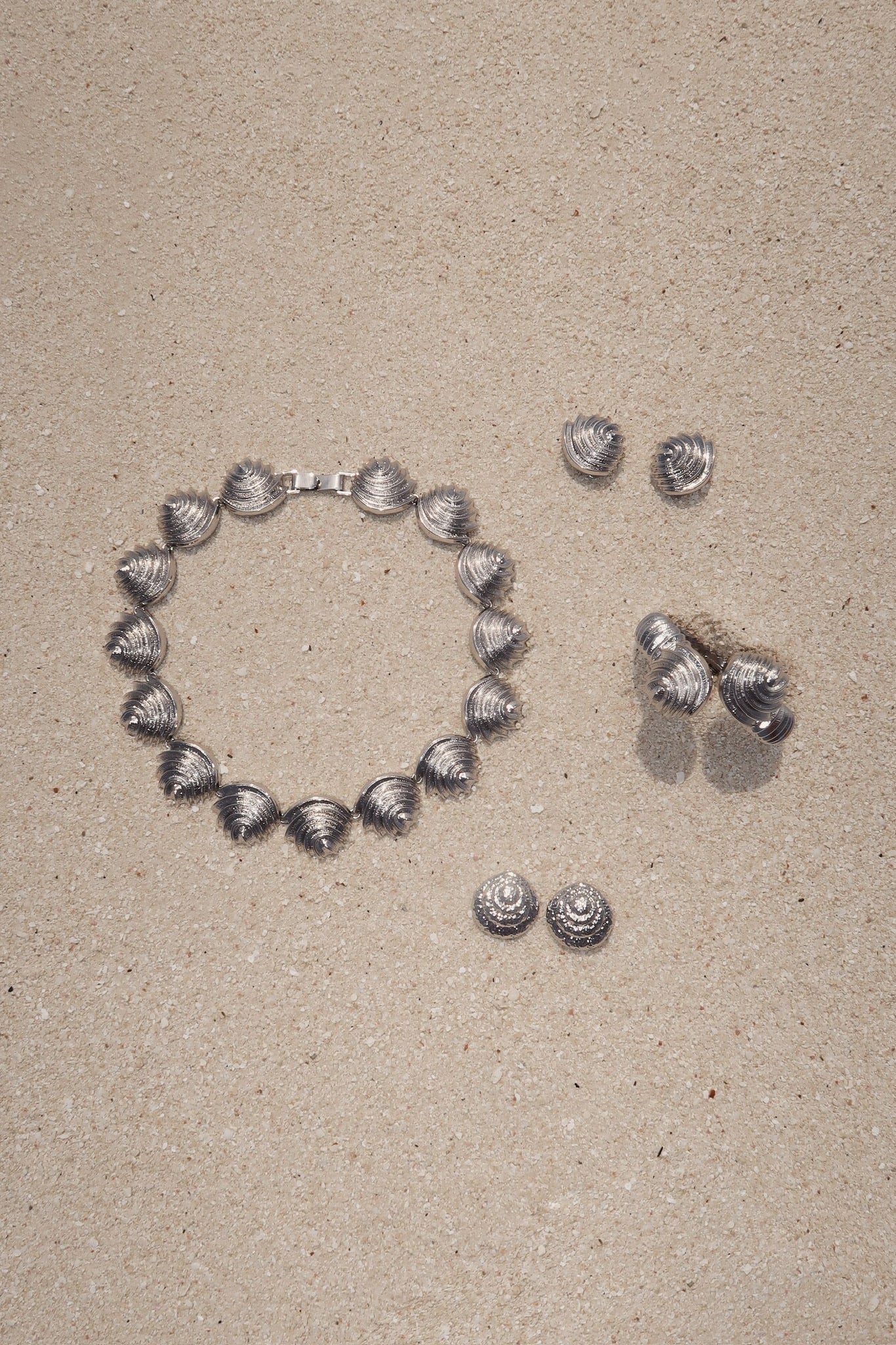 The Cayman Necklace is a refined embodiment of coastal sophistication. Crafted from rhodium-plated brass, its sculptural shell design captures the essence of seaside elegance. Measuring 17 inches in length, it rests gracefully at the collarbone, while a sleek hook clasp ensures effortless wear. Perfect for elevating any ensemble, this timeless piece transitions seamlessly from day to night, making it a true statement of understated luxury.