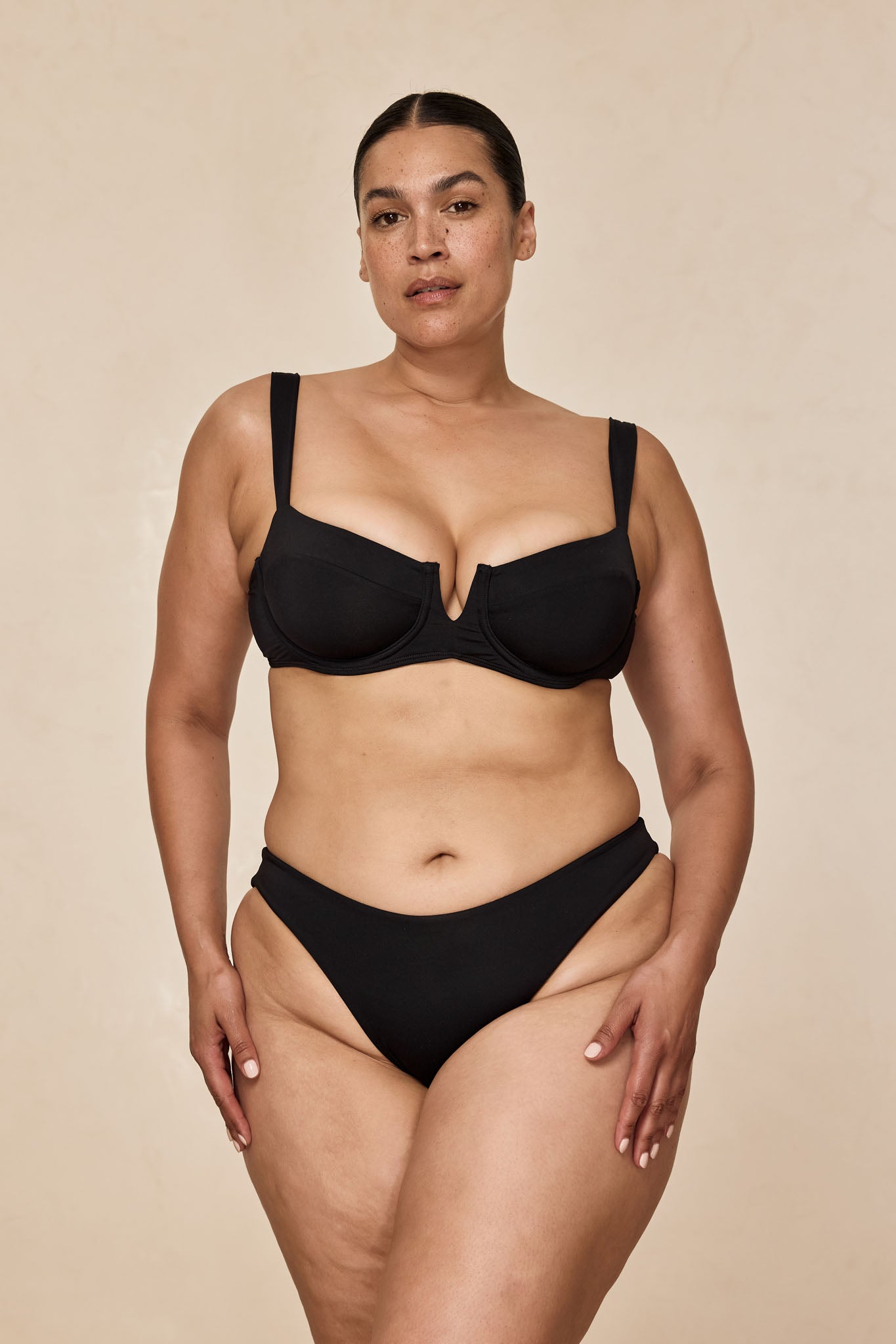The Clovelly Top is one of our best sellers due to its flattering yet supportive design. This top features a built-in underwire that never digs, adjustable over-the-shoulder straps, and a tie back, allowing you to find the most comfortable fit for your body.