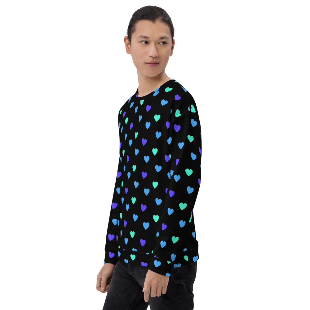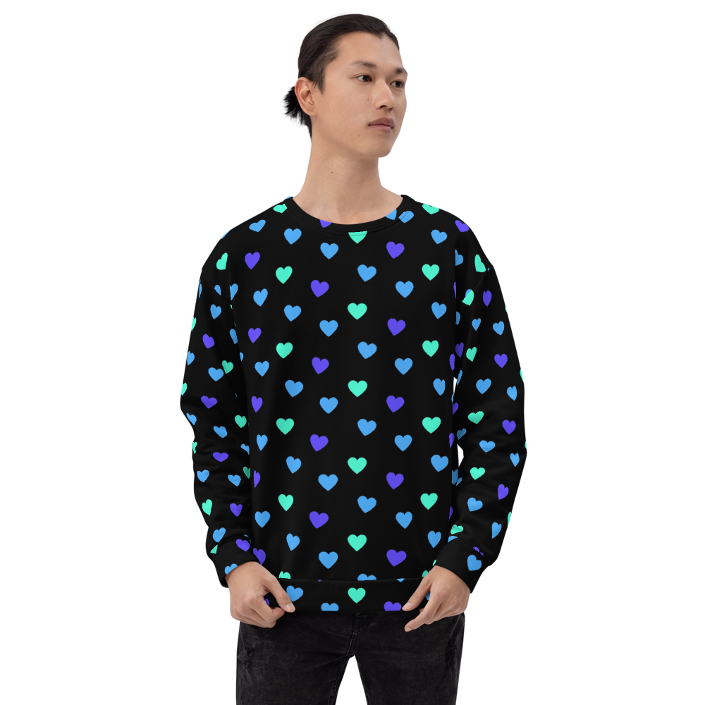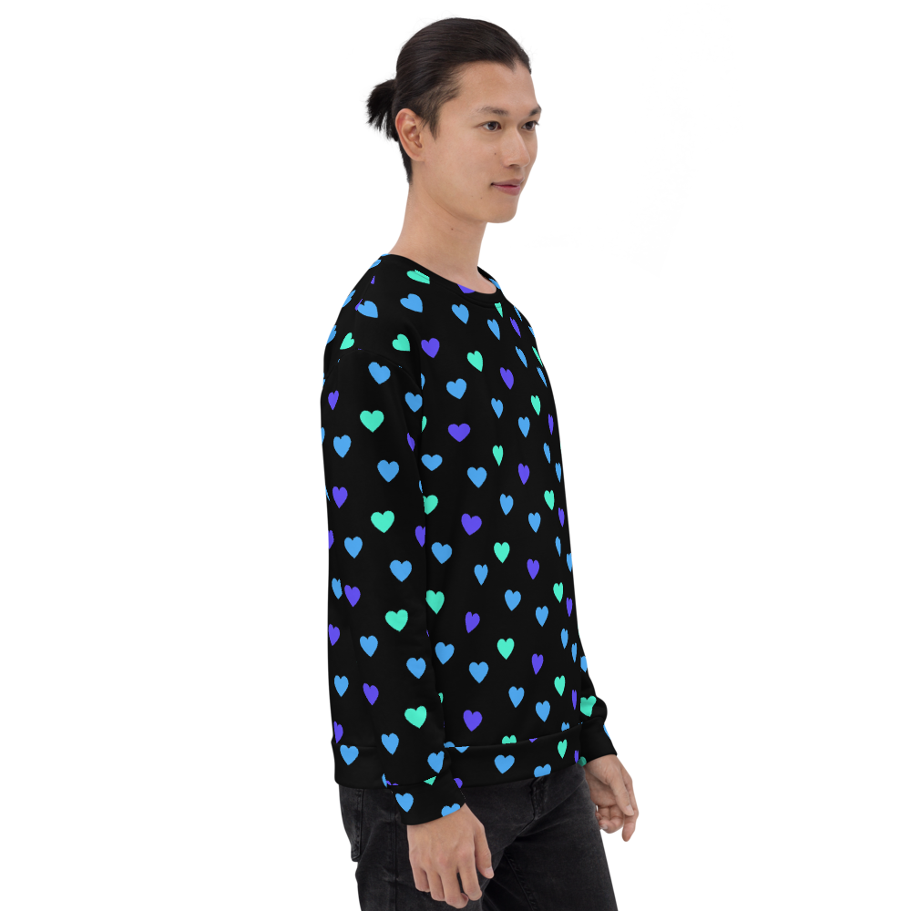 - The complementary black/blue color scheme coordinates with ALL other pieces in our Cool To Care collection. We love this black/blue sweatshirt paired with the Polka Dot Heart Print Biker Shorts in Navy/Sky Blue.
