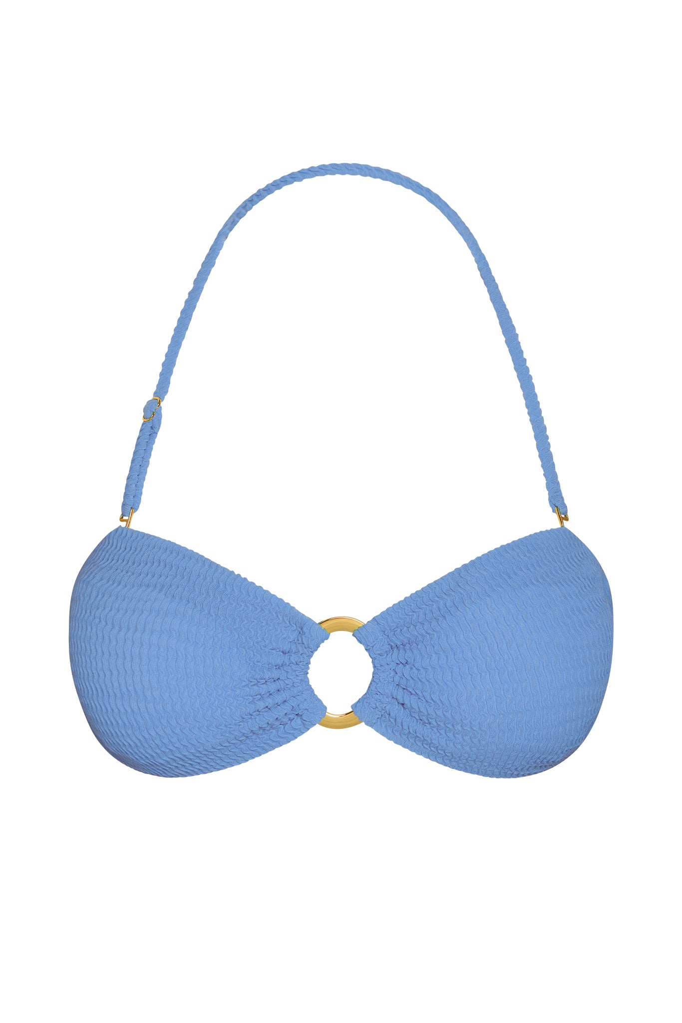 Soak in the sun while wearing the Costa Rica Top. This bandeau style top features a center front gold ring hardware and a removable halter strap that can be adjusted for the perfect amount of lift and support for all your beach adventures. Perfect for cup sizes A-D! Our super supportive and flattering crinkle fabric is fully lined and tailored to make you look and feel your best.