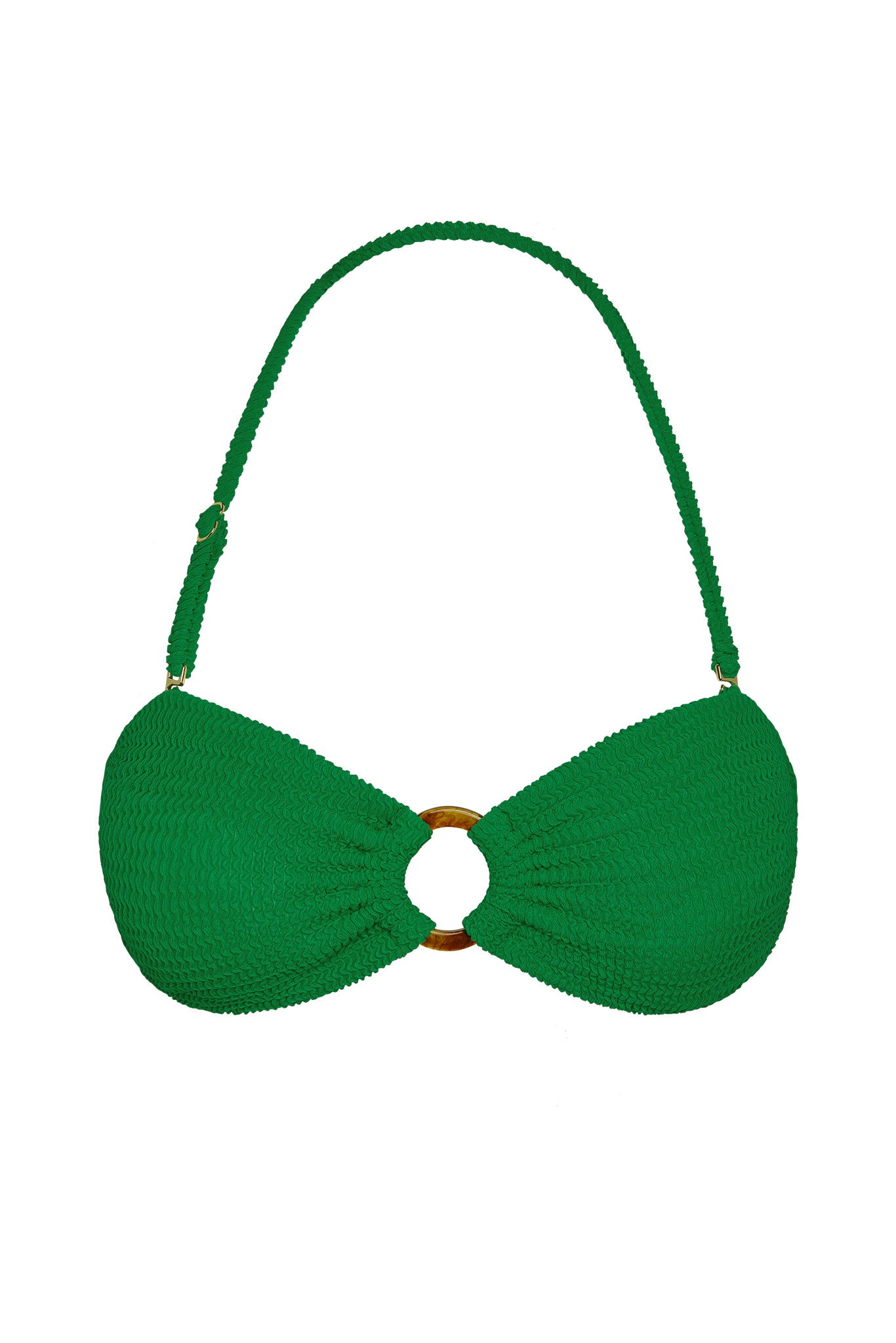 Soak in the sun while wearing the Costa Rica Top. This bandeau style top features a center front tortoise ring hardware and a removable halter strap that can be adjusted for the perfect amount of lift and support for all your beach adventures. Perfect for cup sizes A-D! Our super supportive and flattering crinkle fabric is fully lined and tailored to make you look and feel your best.