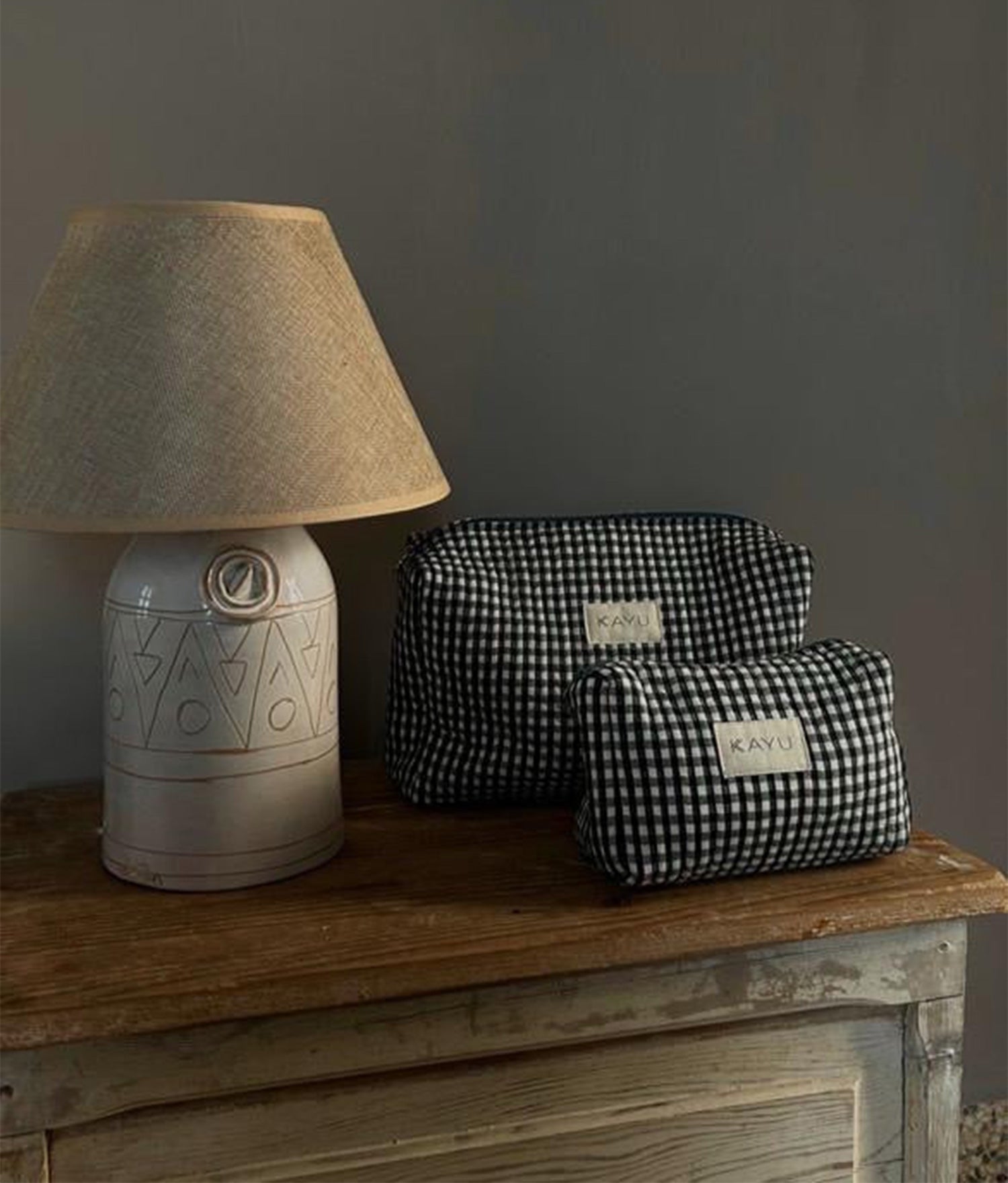 Elsie Travel Case Zip Pouch Bag - Black Gingham - Kayu