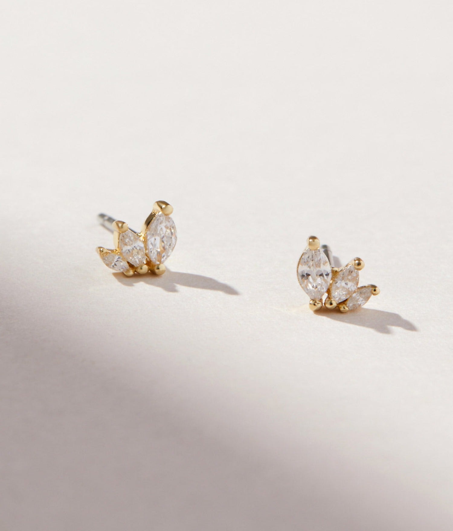Three sparkling teardrop cubic zirconia gemstones dot each of these gold stud earrings crafted in recycled Sterling Silver and dipped in 14K gold. Lightweight and simple, these earrings are all you need to add just the right amount of sparkle to both casual and formal outfits.
