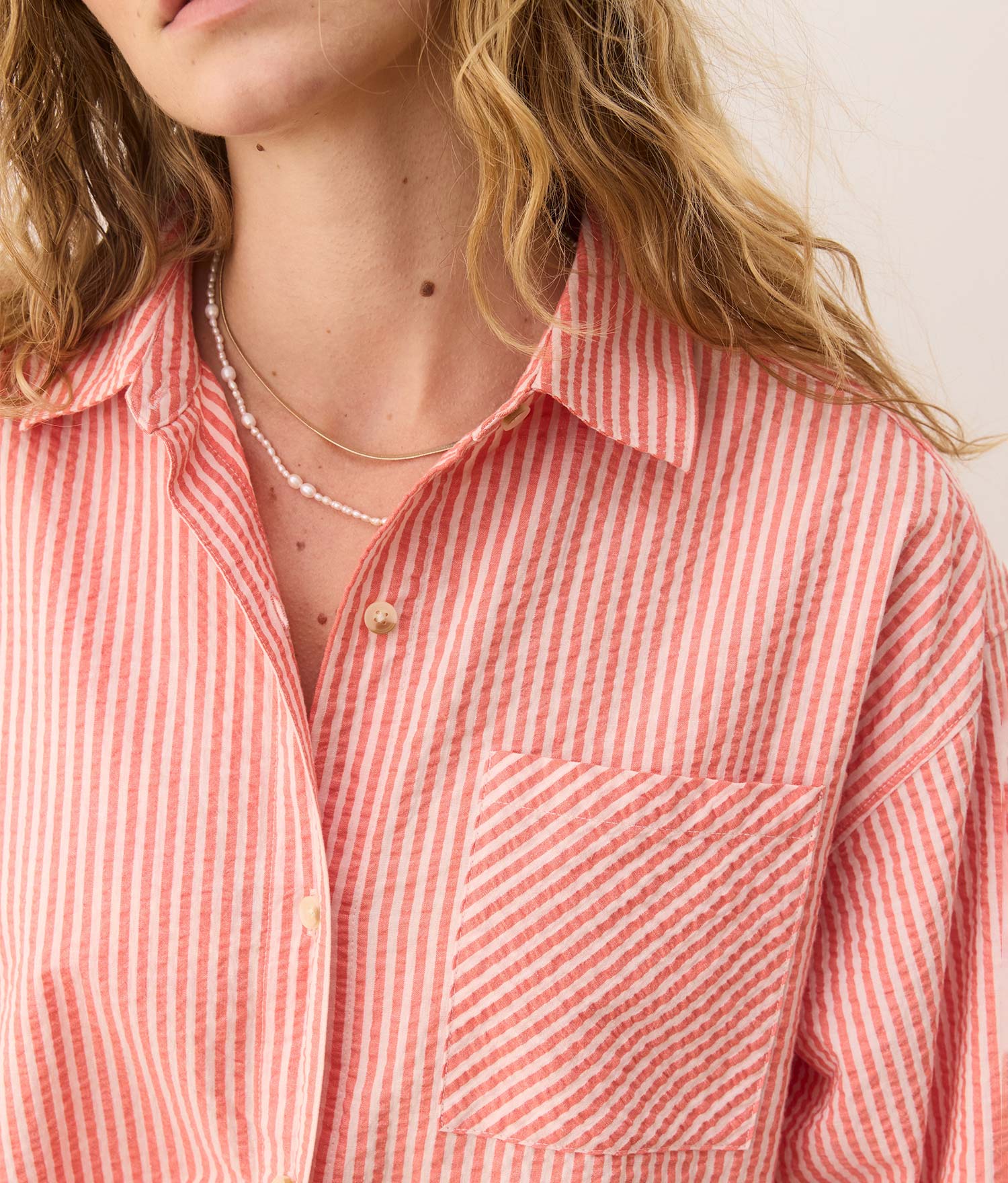 The button-down that’s anything but buttoned-up. Made from 100% Pima Cotton Poplin, this gem is soft, breathable, and completely fuss-free. Unlike a stiff work shirt, it’s lightweight with a perfectly lived-in feel.