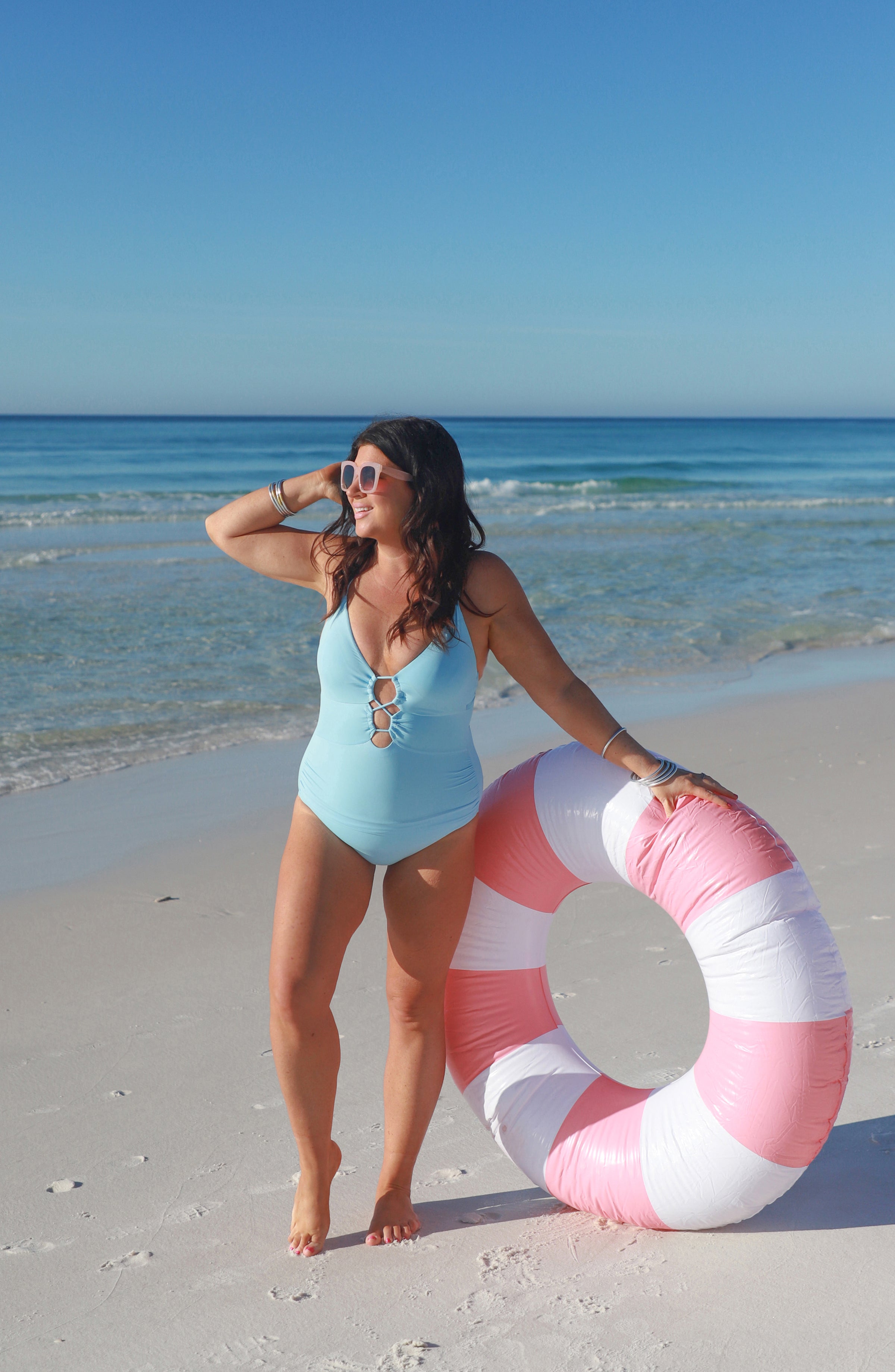 Just as sexy as a bikini, this one-piece suit flaunts your figure at every curve. A lace-up detail at the center of the bust allow glimpses of skin to peek through, while allover shirring slims and smooths for a trim look. The double, adjustable straps crisscross in back.