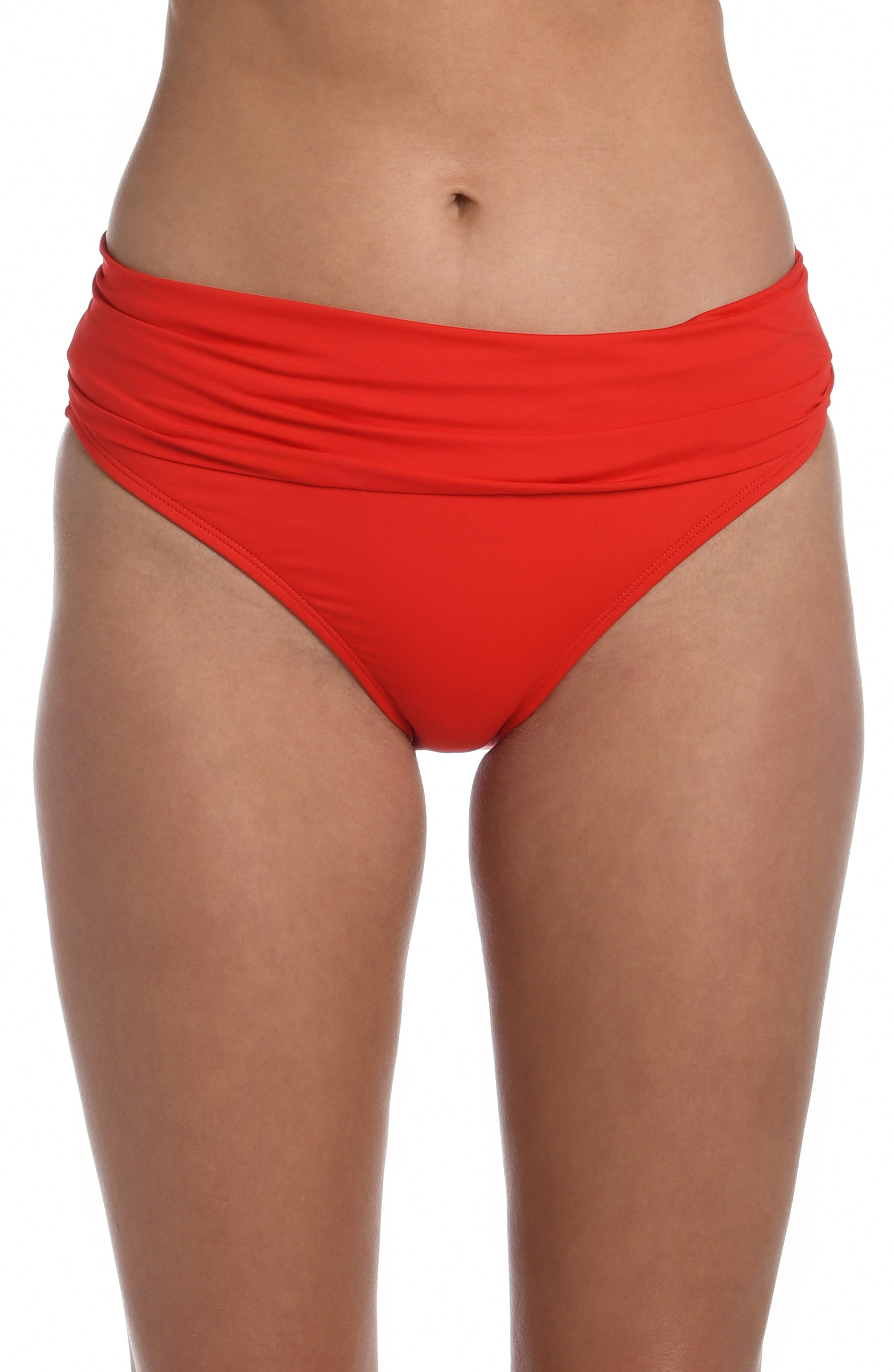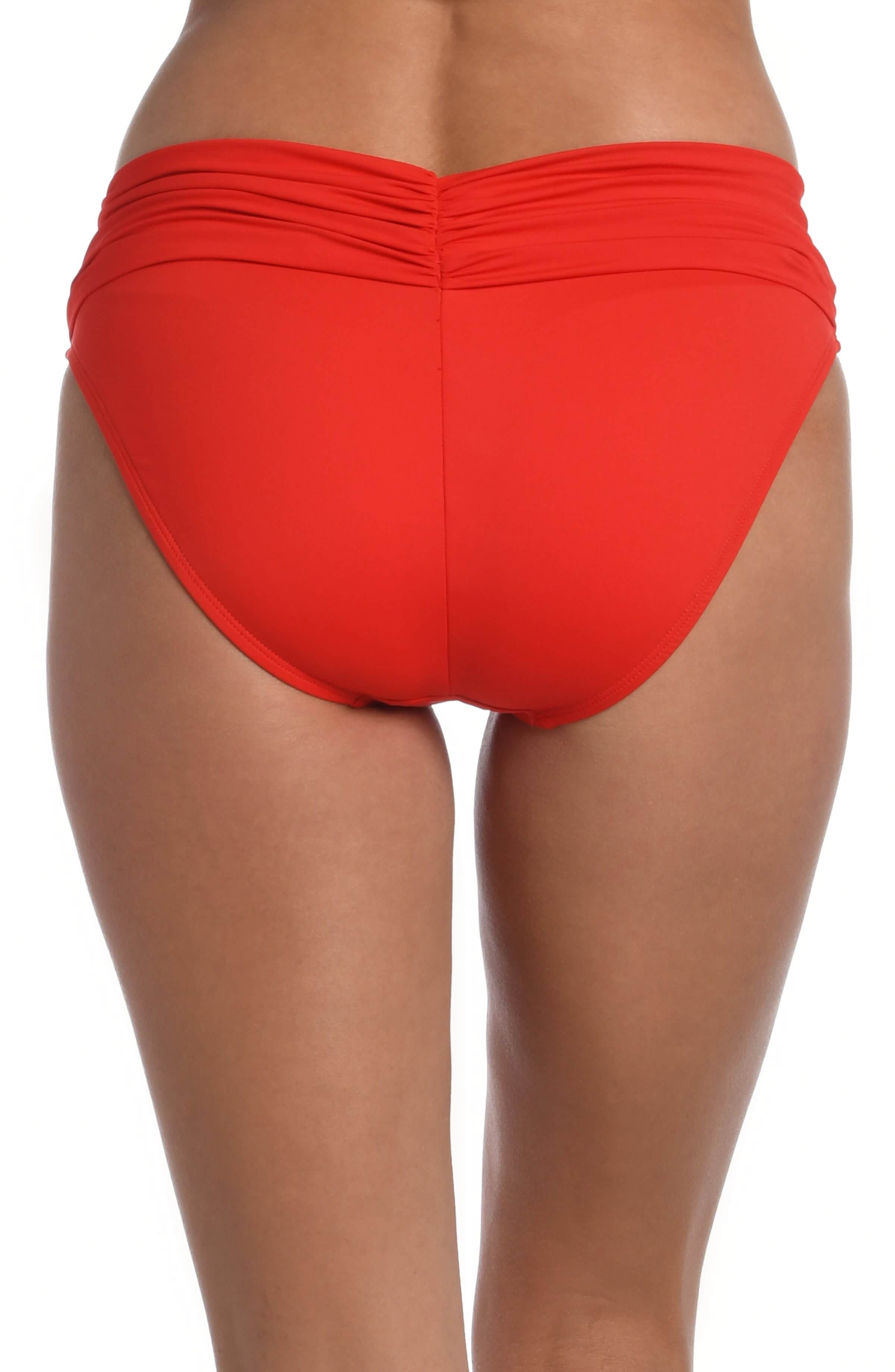 These hipster bikini bottoms instantly smooth and slim with an eye-catching ruched band that provides plenty of visual interest. The hipster cut flatters your figure in front with discreet coverage in back that won't take away from your curves.