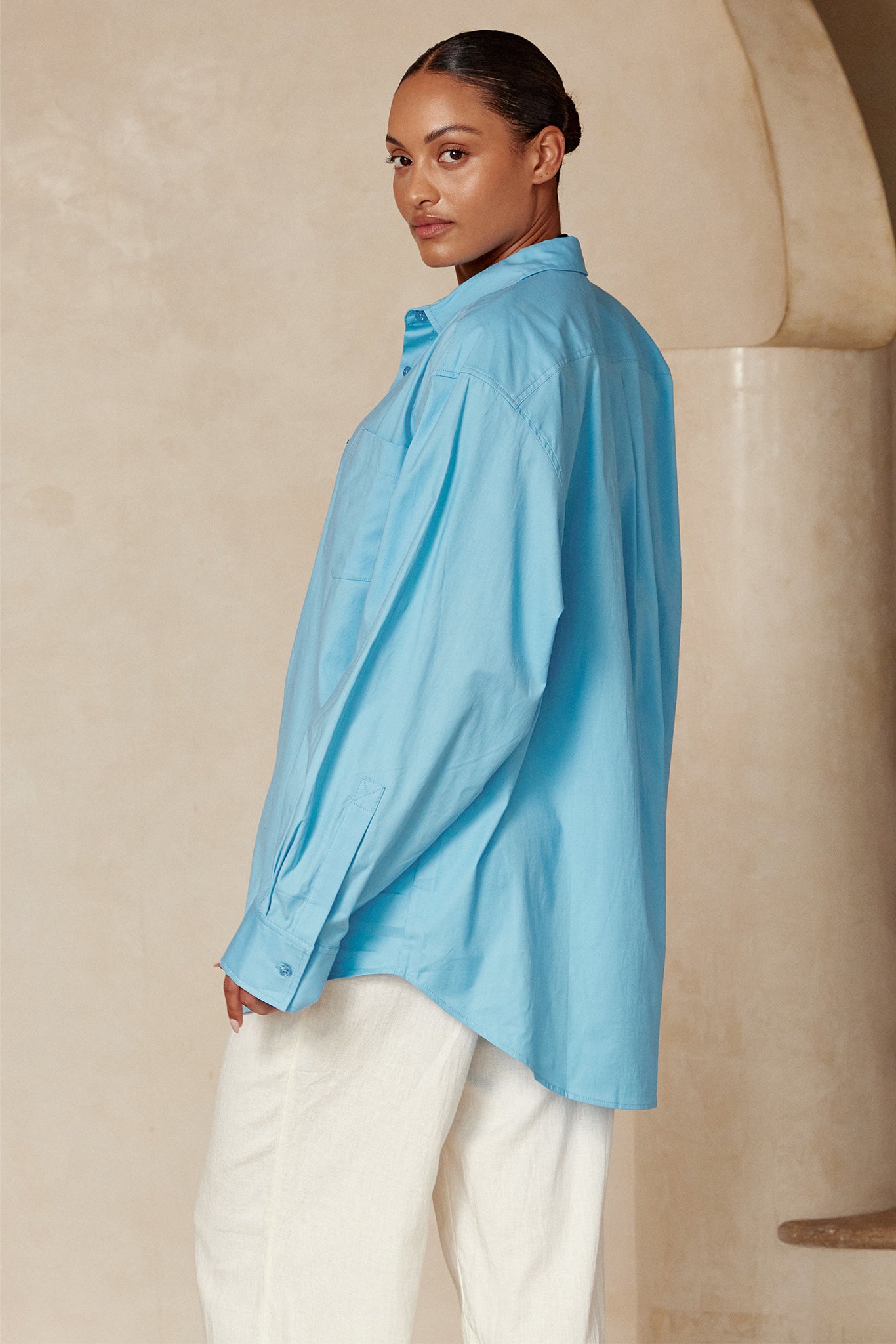From the pool to cocktails, the La Jolla Shirt was made to give you a chic and effortless look. Designed in a lightweight airy cotton, this classic shirt is finished with a collar, pocket detail, long sleeves and center front buttons.