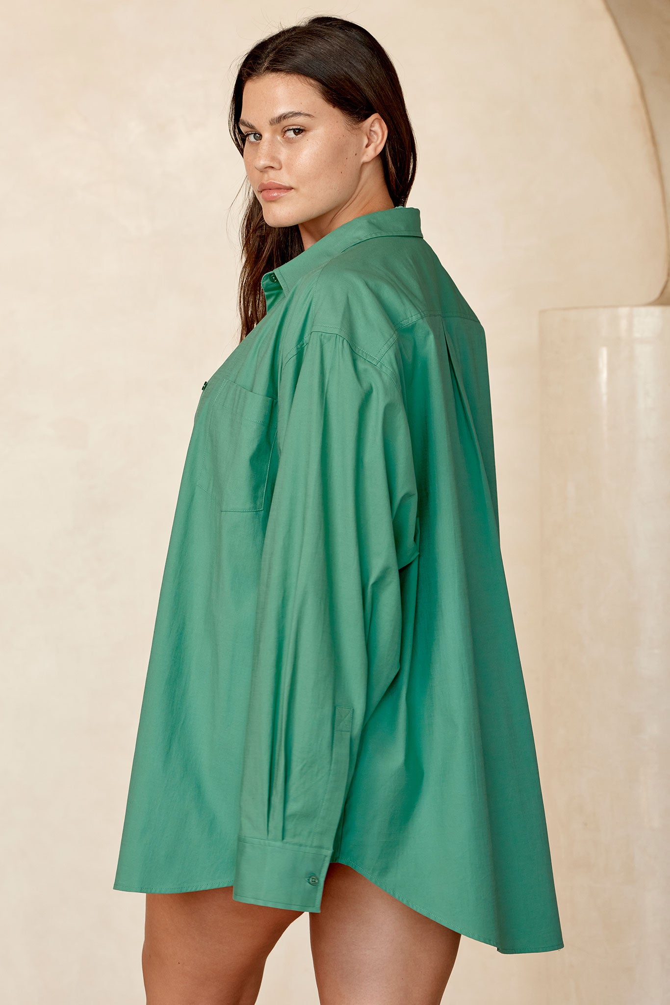 From the pool to cocktails, the La Jolla Shirt was made to give you a chic and effortless look. Designed in a lightweight airy cotton, this classic shirt is finished with a collar, pocket detail, long sleeves and center front buttons.