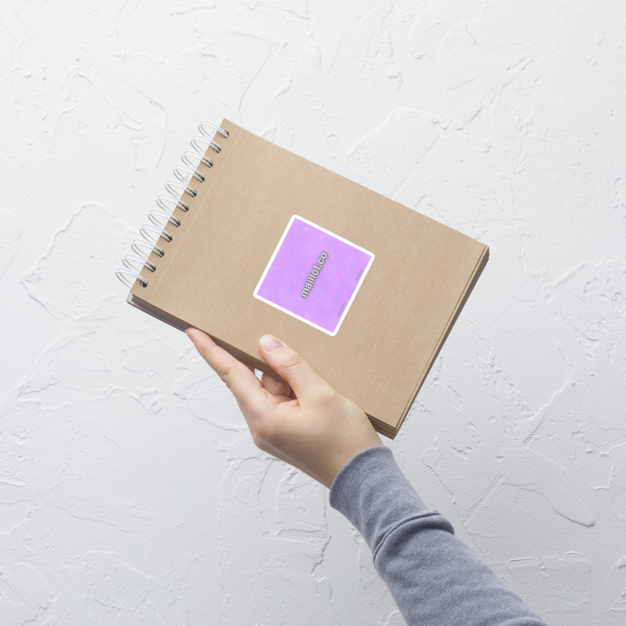 Large square maillot.co logo sticker with an out-of-this-world pink and purple space design.