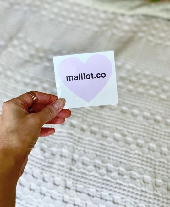 Large heart-shaped vinyl sticker featuring the pastel purple maillot.co logo.