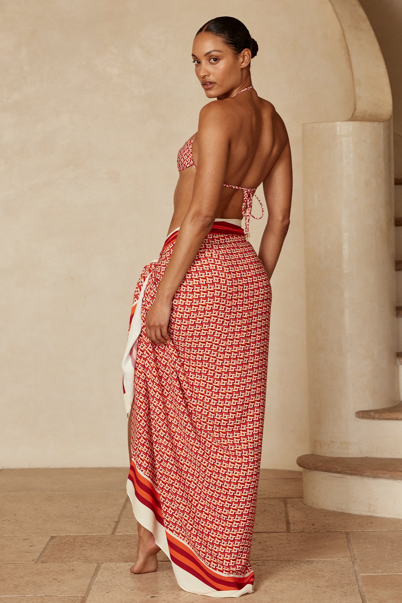 Versatile for all your over-swim needs, our Marina Piccola Sarong can be tied as a mini or midi length beach cover-up. Featuring our Monday branding throughout the design, this sarong can double as a top, sarong and scarf.