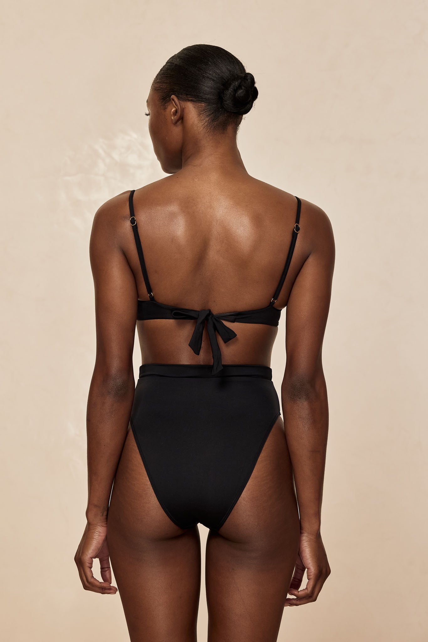 The second underwire top in the Monday Swimwear collection, the Maui Top draws attention with its cleavage enhancing demi-cups perfected by delicate shoulder straps and gold sliders. This top is adjustable around the bust with a soft, simple back tie so it supports you, comfortably, in all the right places.