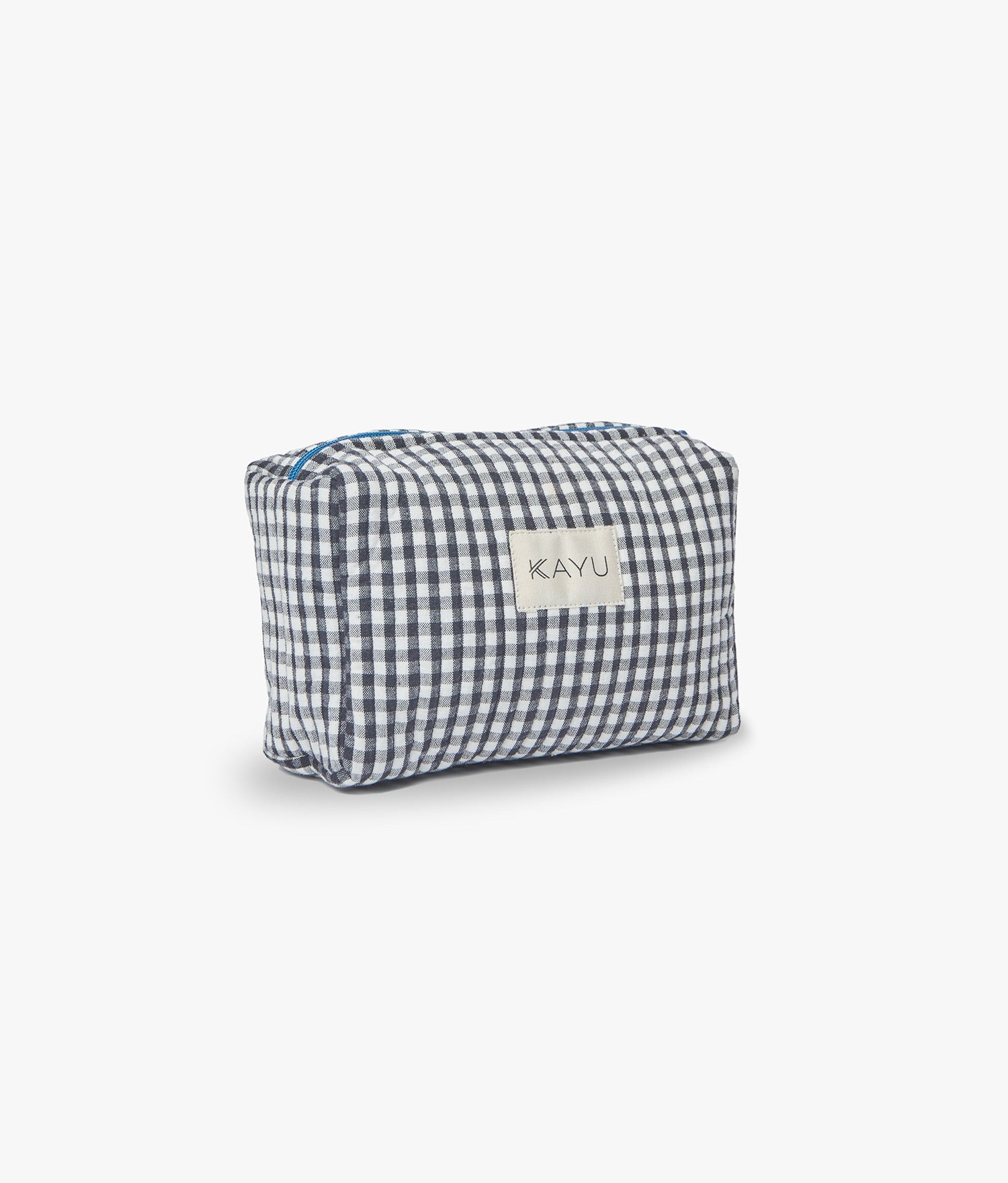 Mini Elsie Travel Case Zip Pouch Bag - Black Gingham - Kayu