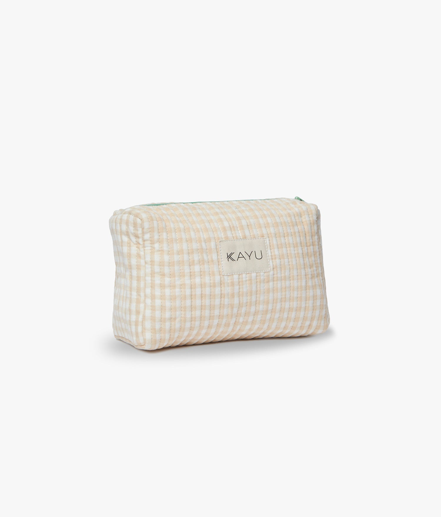 Mini Elsie Travel Case Zip Pouch Bag - Beige Gingham - Kayu