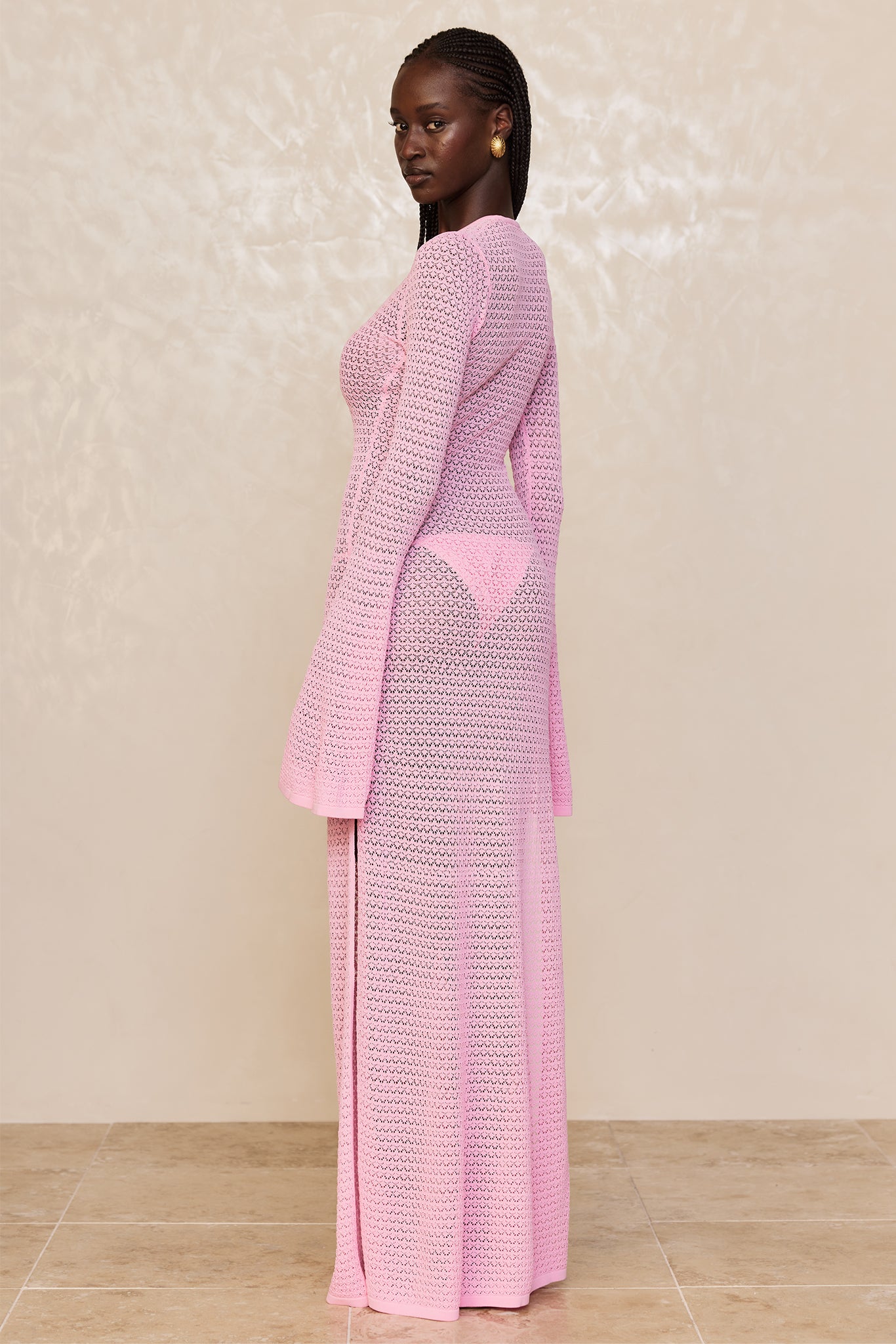 This garment is very delicate. In order to minimize snagging, please avoid rough surfaces and be careful when wearing jewelry and bags. Knitwear can stretch when hung so we strongly suggest folding this garment to store, this will ensure your garment holds its designed shape.
