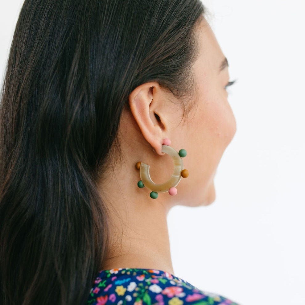 These autumnal colors add a southwest rainbow to our best selling bead hoops.
