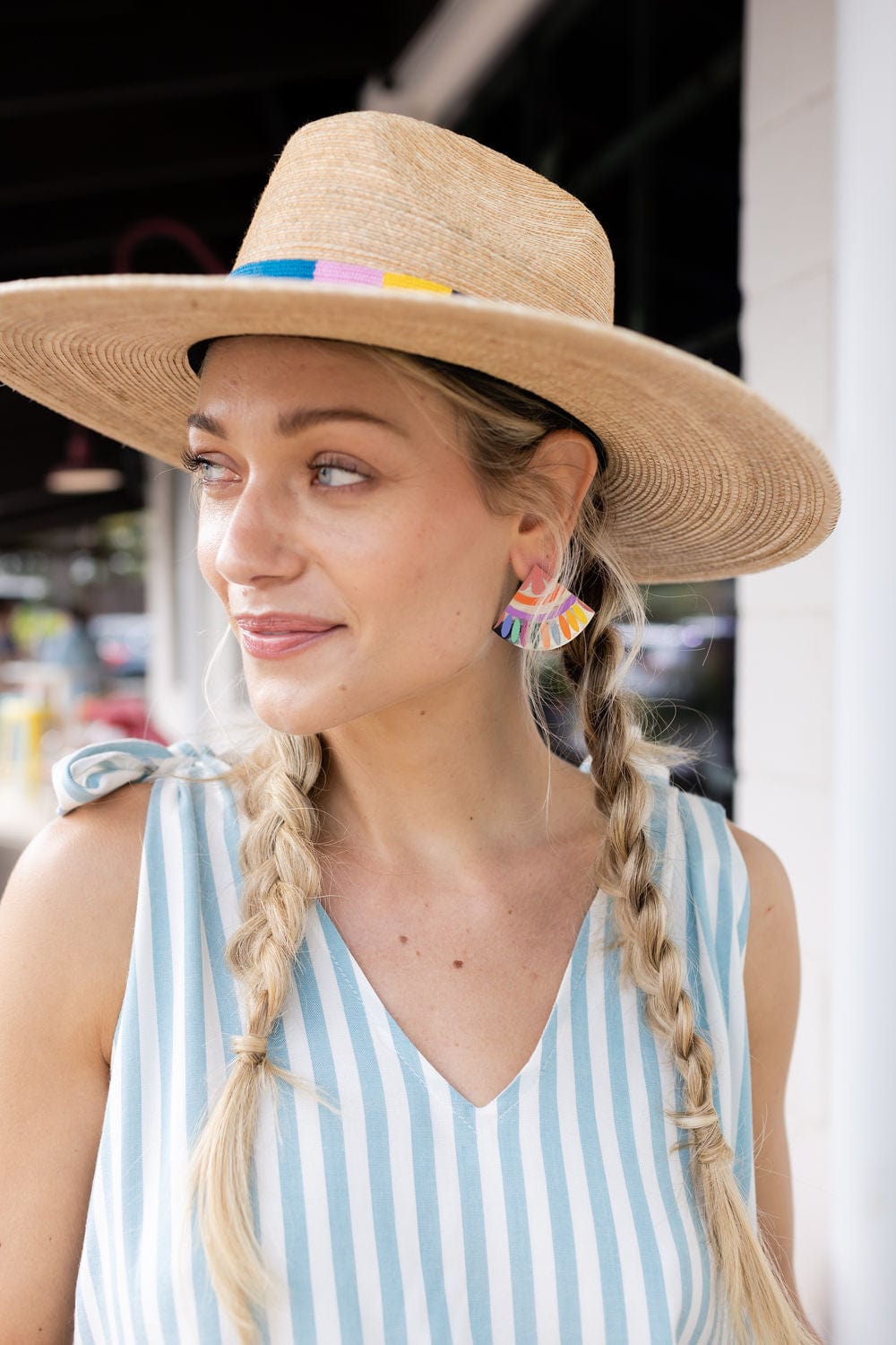 Inspired by the Talavera tiles in Mexico, our Rainbow Tile Earrings are hand painted in a variety of colors on natural buffalo horn to represent the Spanish history and craftsmanship of the luxurious haciendas. These lovely stud earrings will become your new favorite summer accessory.