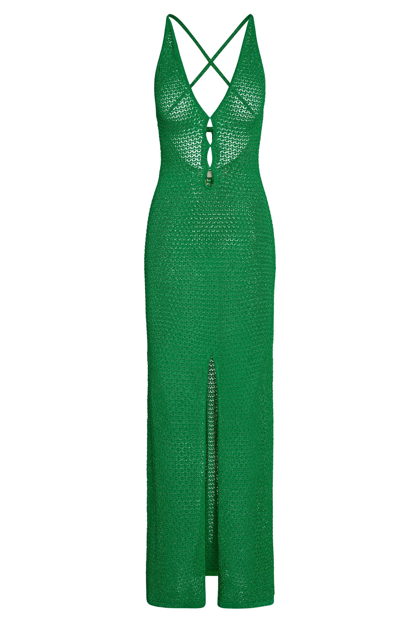 Ramatuelle Dress - Palm Green Lurex Lace Crochet