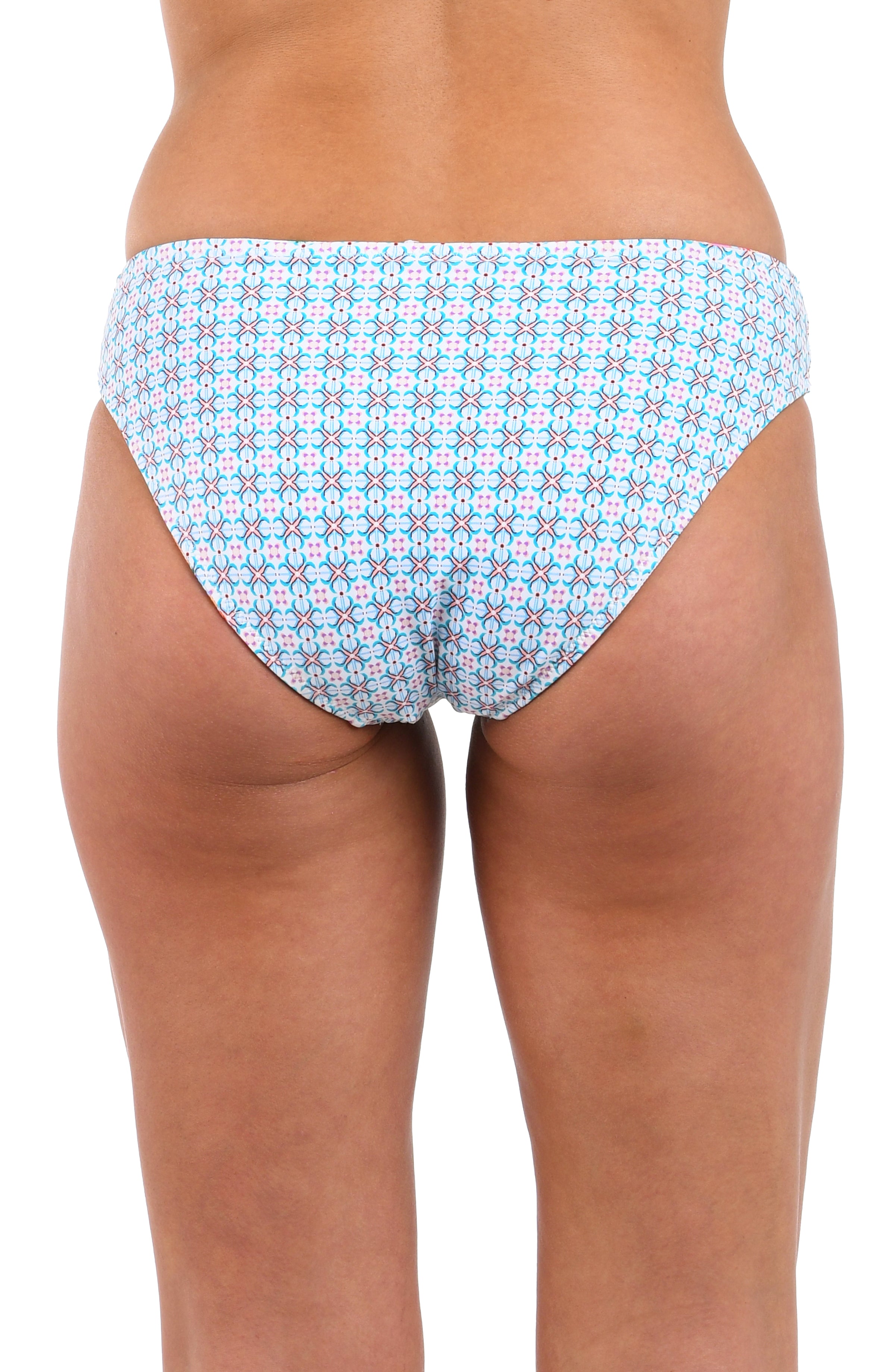 Radiating tropical charm, the vibrant print bursts with colorful flowers and lush green foliage set against a crisp white backdrop. The classic hipster bottom offers moderate coverage, making it ideal for lounging on the beach or soaking up the sun by the pool.