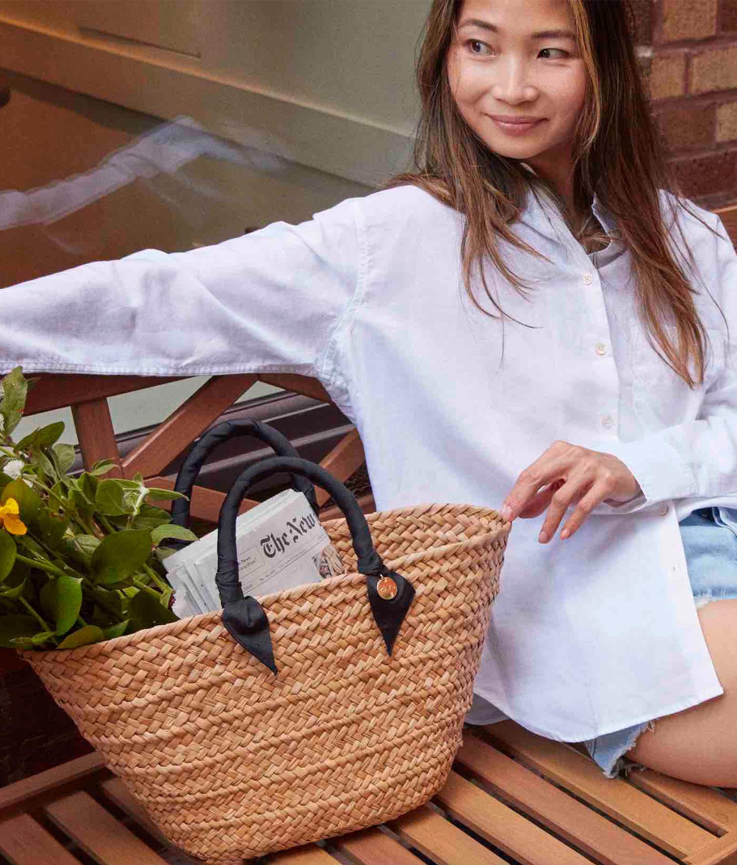 Ribbon-wrapped handles make Rosie the sweetest tote in the bunch. From weekend farmer's markets to warm evenings spent dining al fresco, she's the perfect companion bag. Customize it with a liner for a tote that's uniquely yours. Handbag accessories sold separately here.