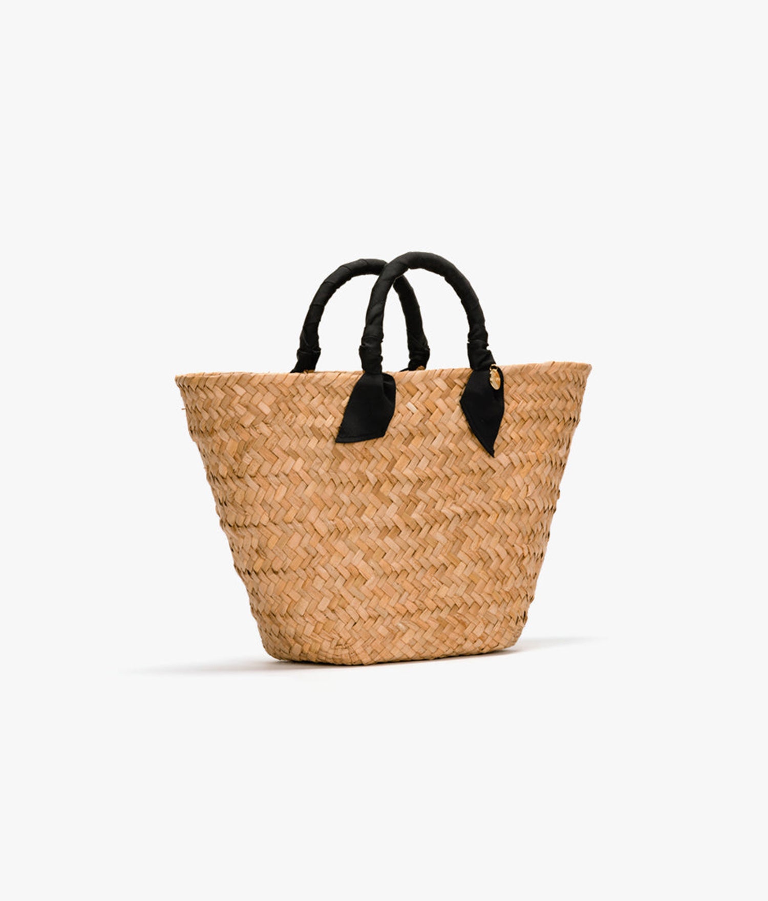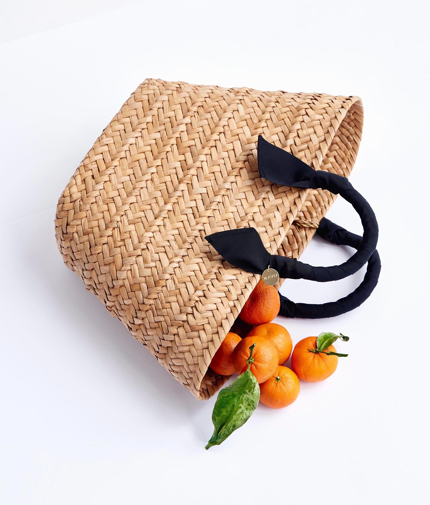 Rosie Woven Straw Ribbon Handle Tote - Black - Kayu
