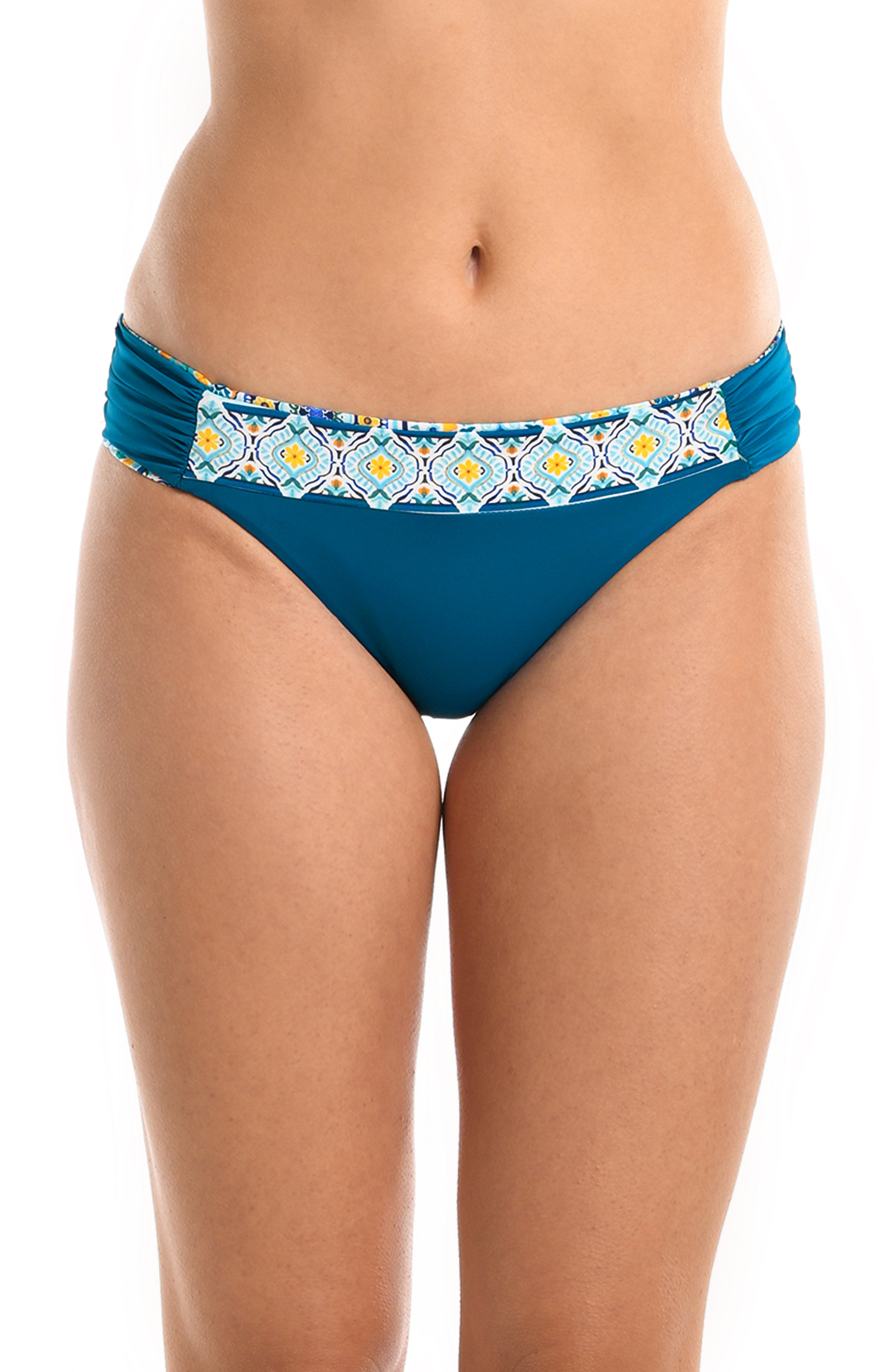 The sleek and sophisticated design is perfect for a luxurious day at the beach or a glamorous poolside gathering. From snorkeling to swimming to sunbathing, these hipster bikini bottoms with figure-flattering shirring at the hips are up for anything. Moderate coverage in back allows you to move comfortably no matter what's on your itinerary.