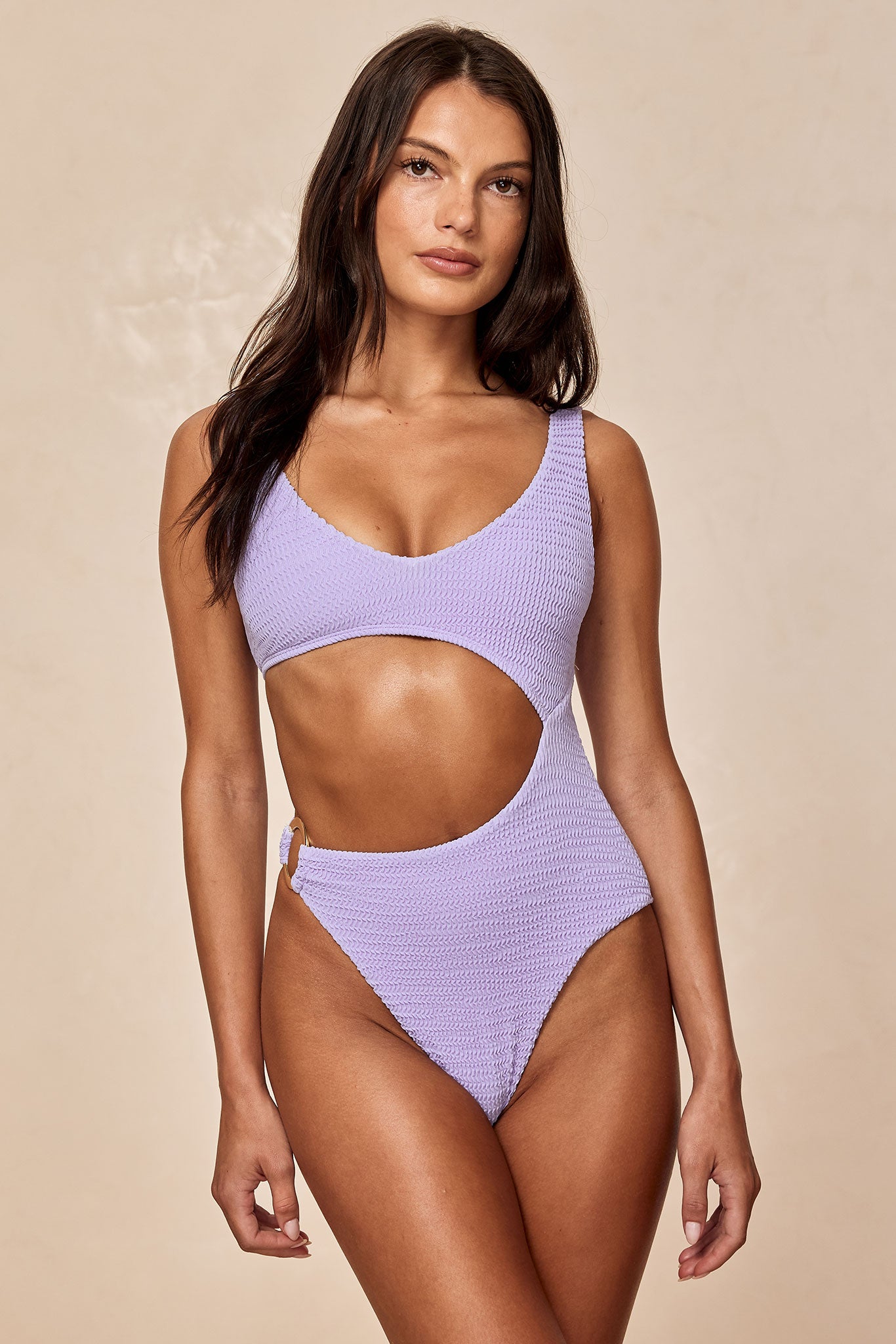 We can't take our eyes off the St. Barth's One Piece. From the sultry cut-out detail to the flattering silhouette, this must-have one piece is made to show off your figure. Complete with a rounded v-neckline, adjustable back tie closure and a ring detail. All eyes on you! Our super supportive and flattering crinkle fabric is fully lined and tailored to make you look and feel your best.