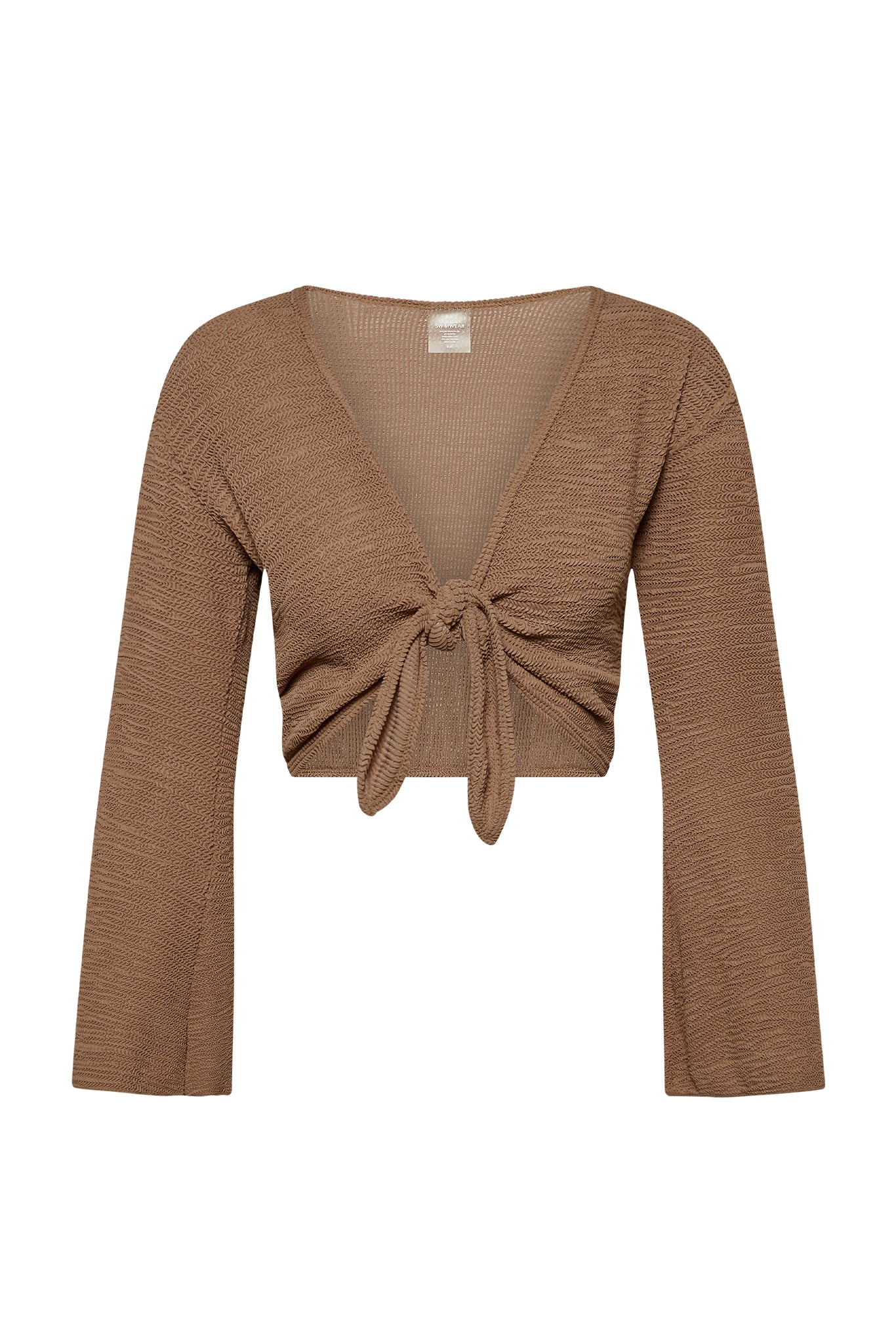 Just as effortless as it is essential, the St. Barth's Top instantly elevates your look. Designed in a beautiful earthy shade in our newest recycled crinkle fabric, this top is complete with a tie front closure, an unlined finish and a slightly bell style sleeve. Pair with the St. Barth's Skirt for a chic outfit.