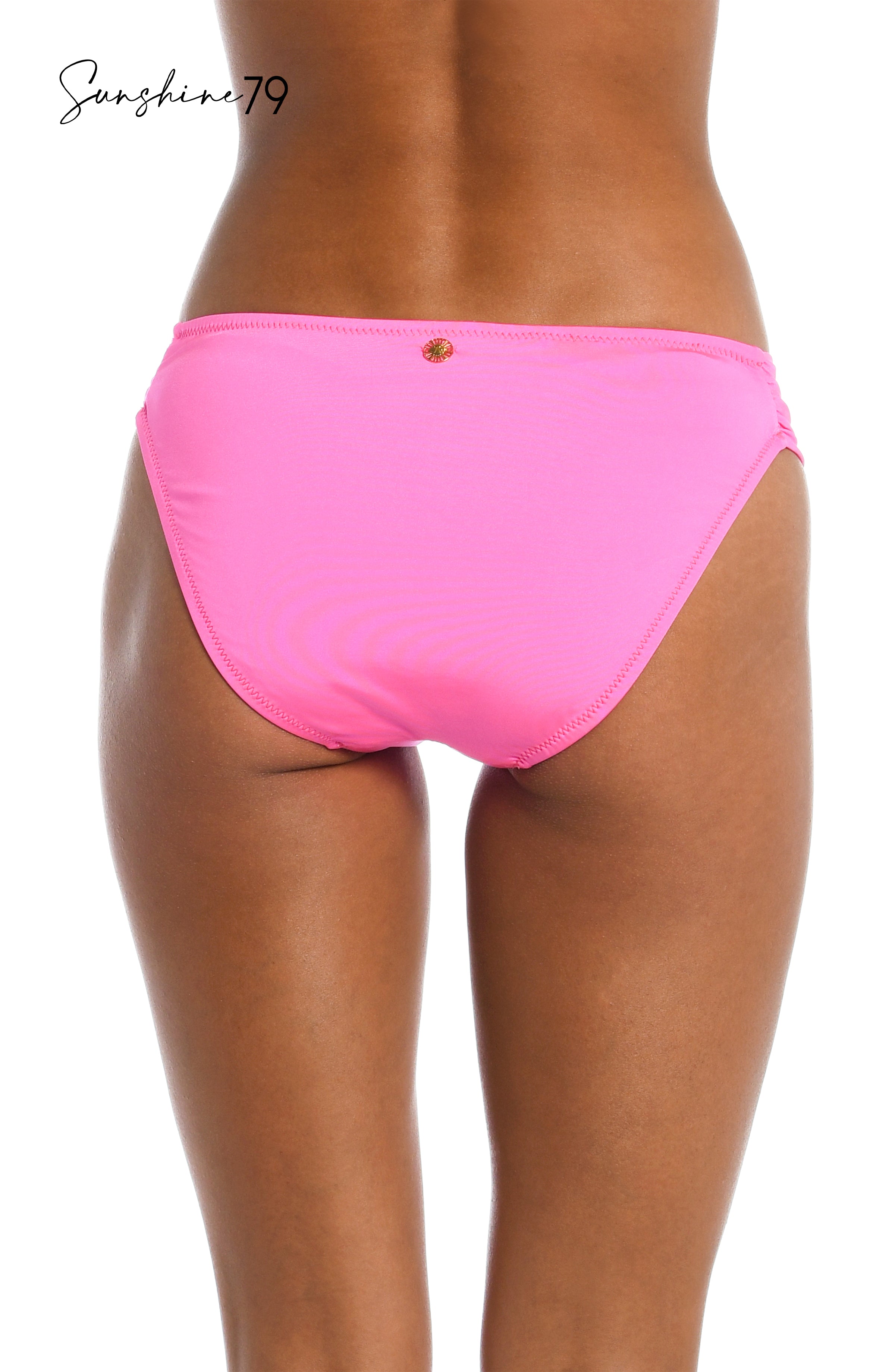 At once sexy and sophisticated, these bikini bottoms by Sunshine 79 are destined to become your go-to favorite of the season. A high-cut front with hip-flattering shirring on each side and just-right coverage in back keeps the look sophisticatedly seductive.