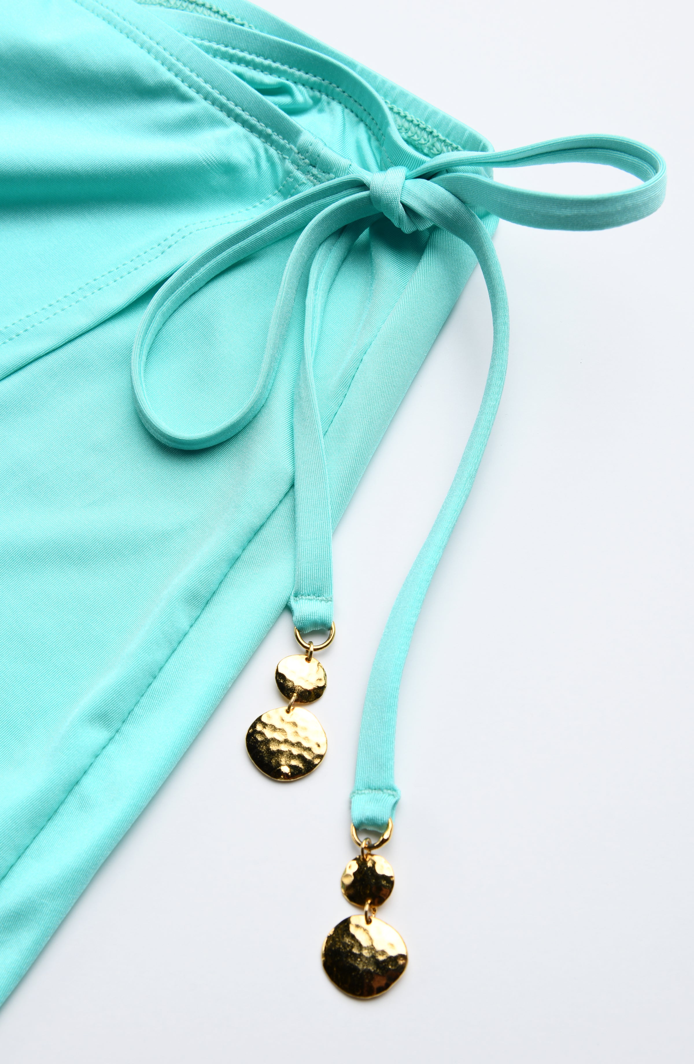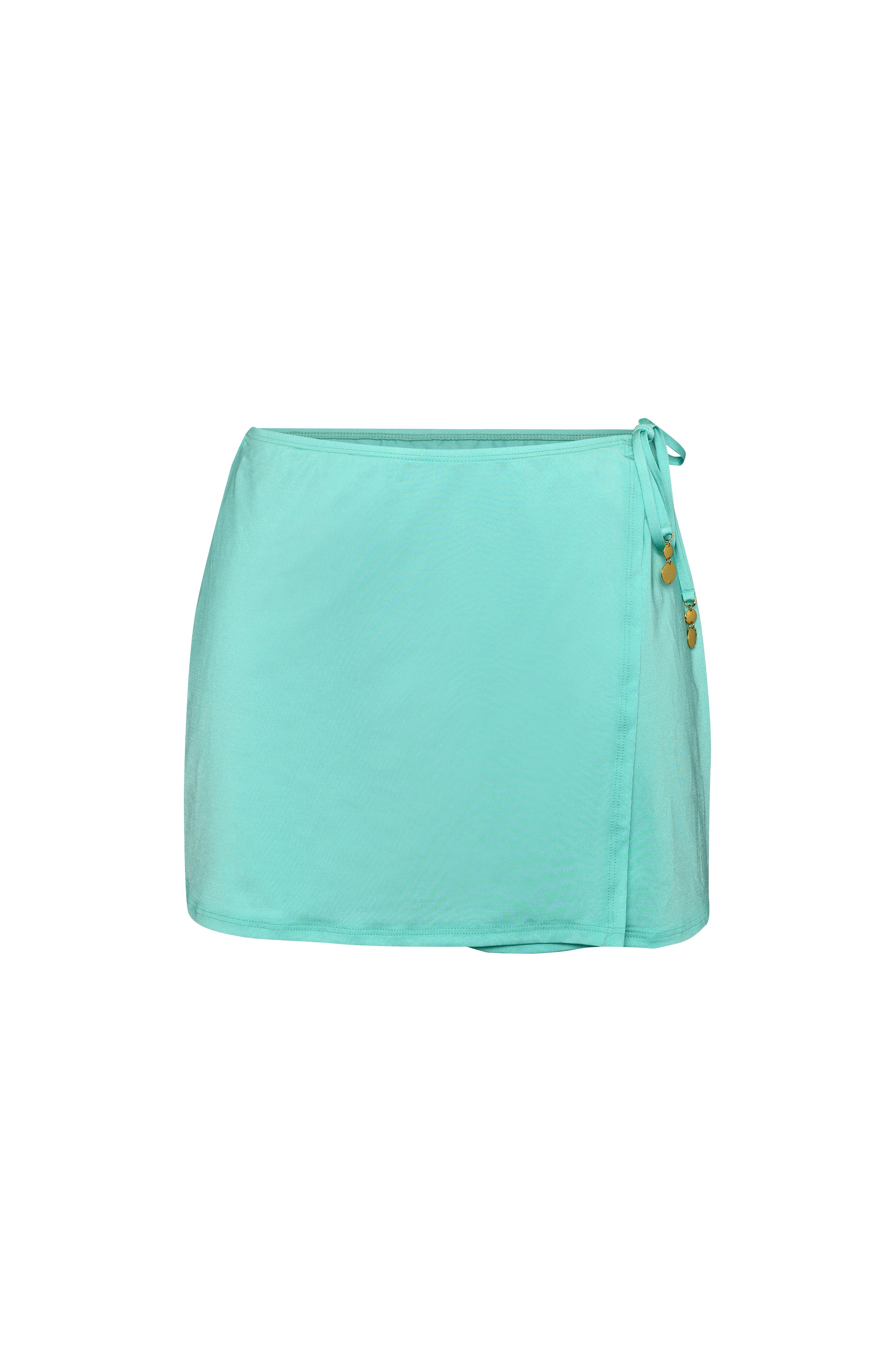 Reflecting the translucent quality of beach glass, this greenish-blue hue captures coastal calm, pairing well with various shades for a beach-inspired look. A mini silhouette instantly flatters the figure, creating a flirty and alluring look. Equally suited for swimsuits or a cute cami, it's the perfect throw-on-and-go piece to keep your look sophisticated.