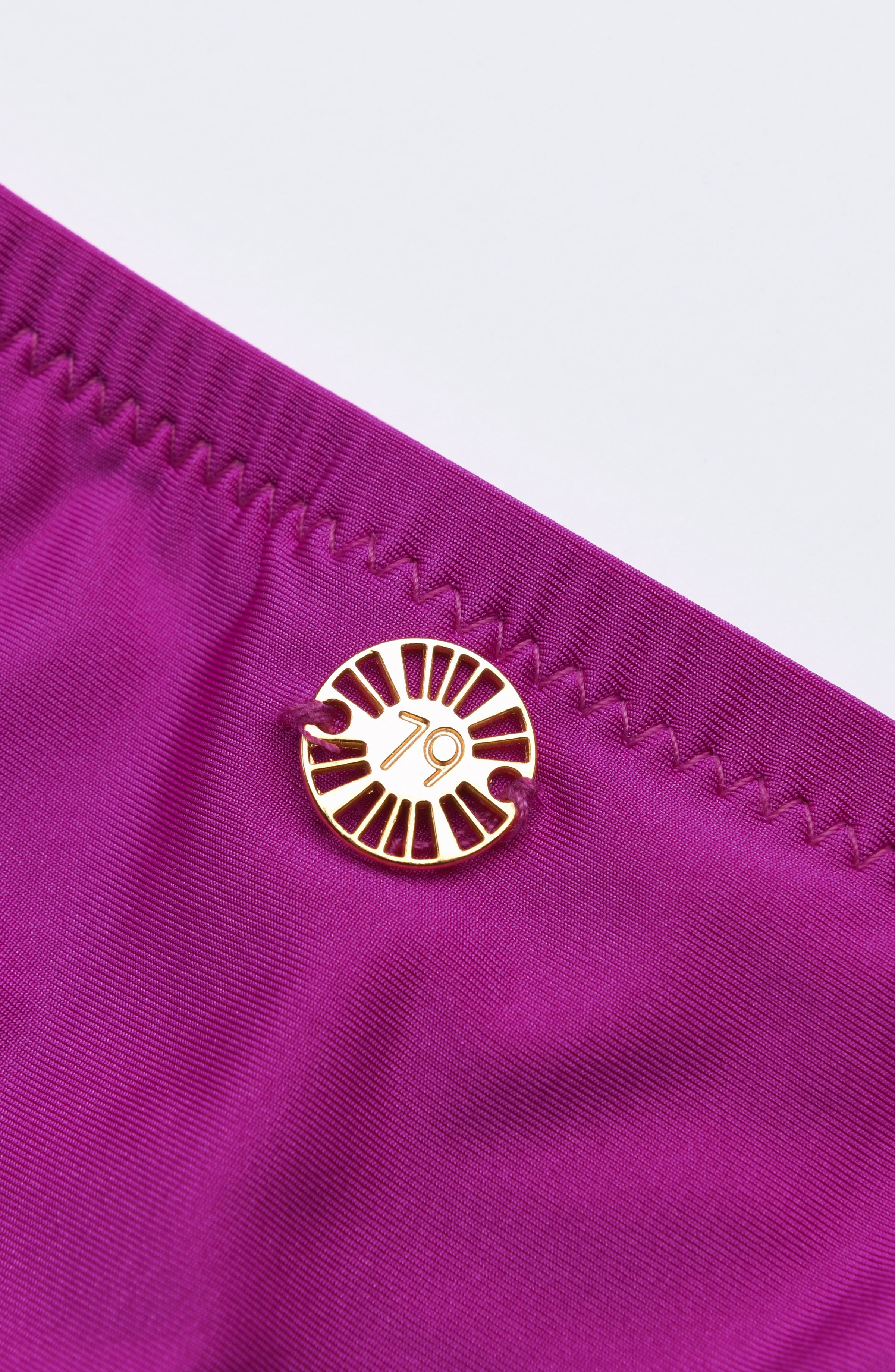 Featuring a vivid, bold bright violet color, this bottom radiates energy and vibrancy. A hipster silhouette with hip-flattering shirring on each side and just-right coverage in back keeps the look sophisticatedly seductive.