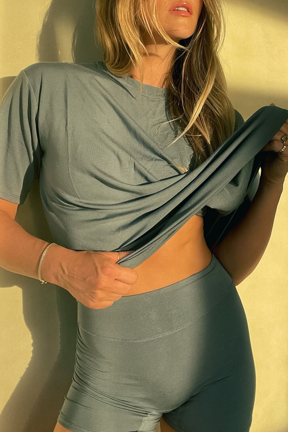 Your new go-to tee for cooler snoozing, lounging, running errands, coffee shop dates, and everything in between. Featuring an oversized fit with drop shoulders and a longer length, this tee offers the perfect blend of comfort and style. Made from buttery soft, extremely airy, and naturally cooling TENCEL™ Modal, this tee piece will be your new fave. This T-Shirt can be worn on it’s but pairs perfectly with The Cool-Comf Scrunch Boxer Shorts and The Cool-Comf Lounge Bralette.