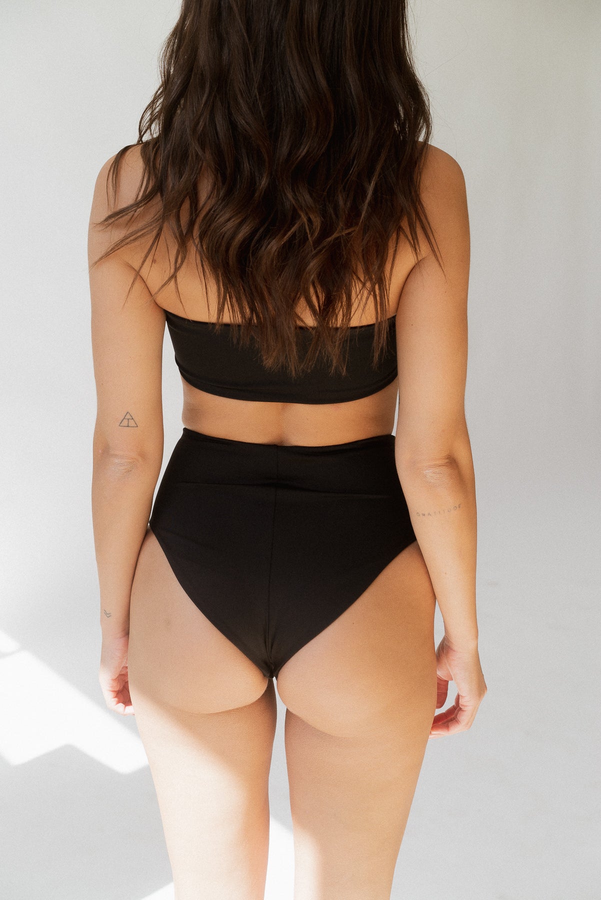 Our classic super high waisted bottom narrows at the smallest part of your waist with a cheeky cut. Center seam down the back for added booty definition.