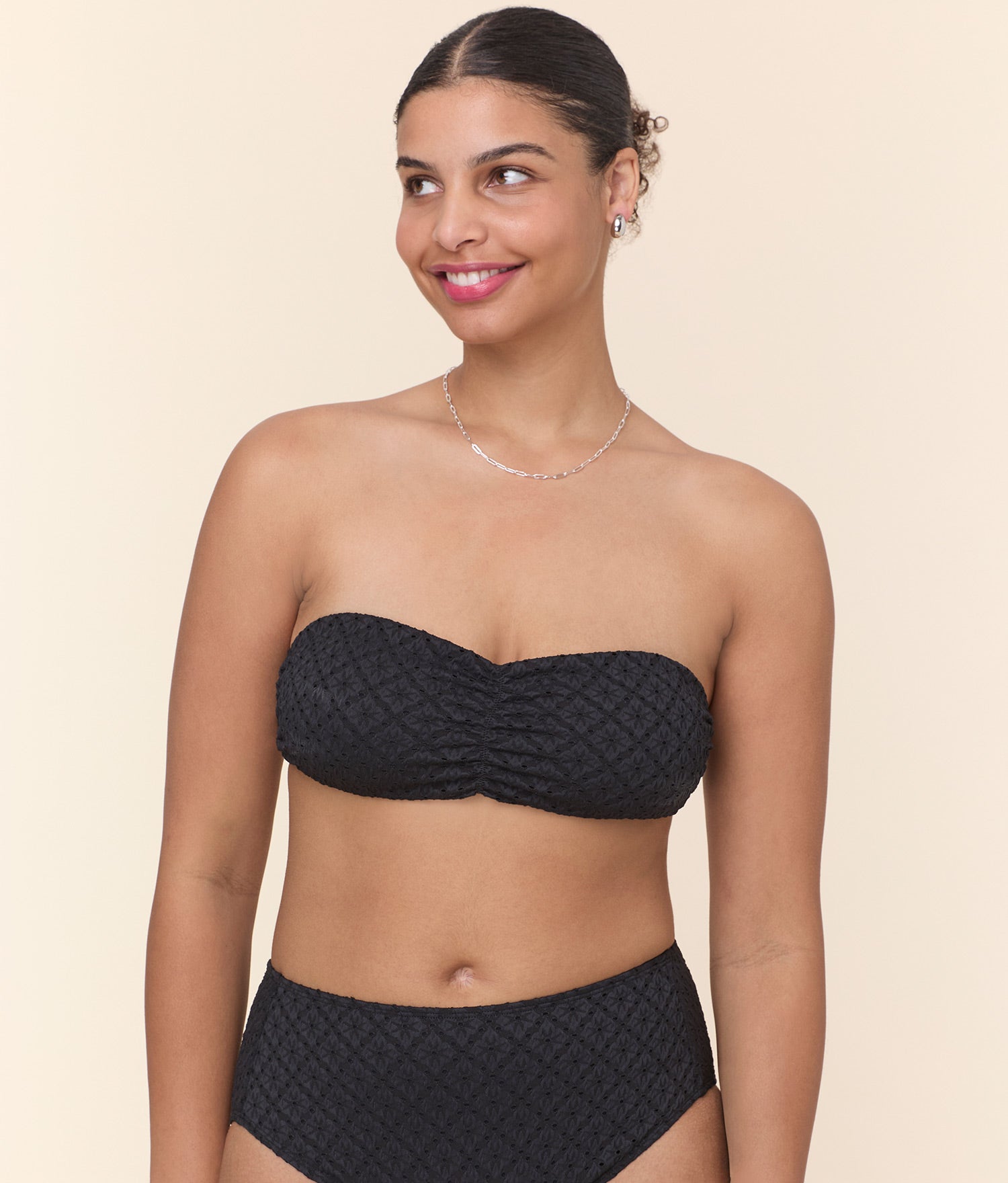 The strapless Pana top is the ultimate piece for showing off your shoulders. An elastic neckline creates a snug yet mobile fit for carefree movement, and centered ruching brings texture and detail.