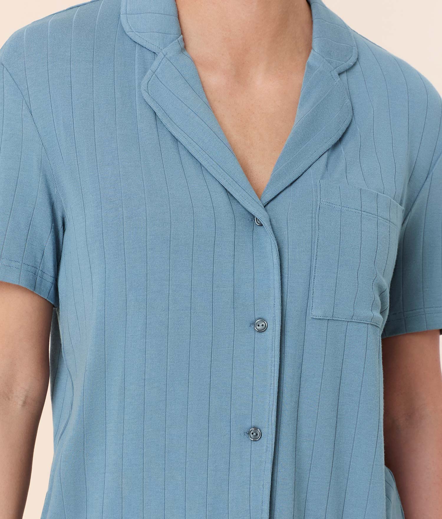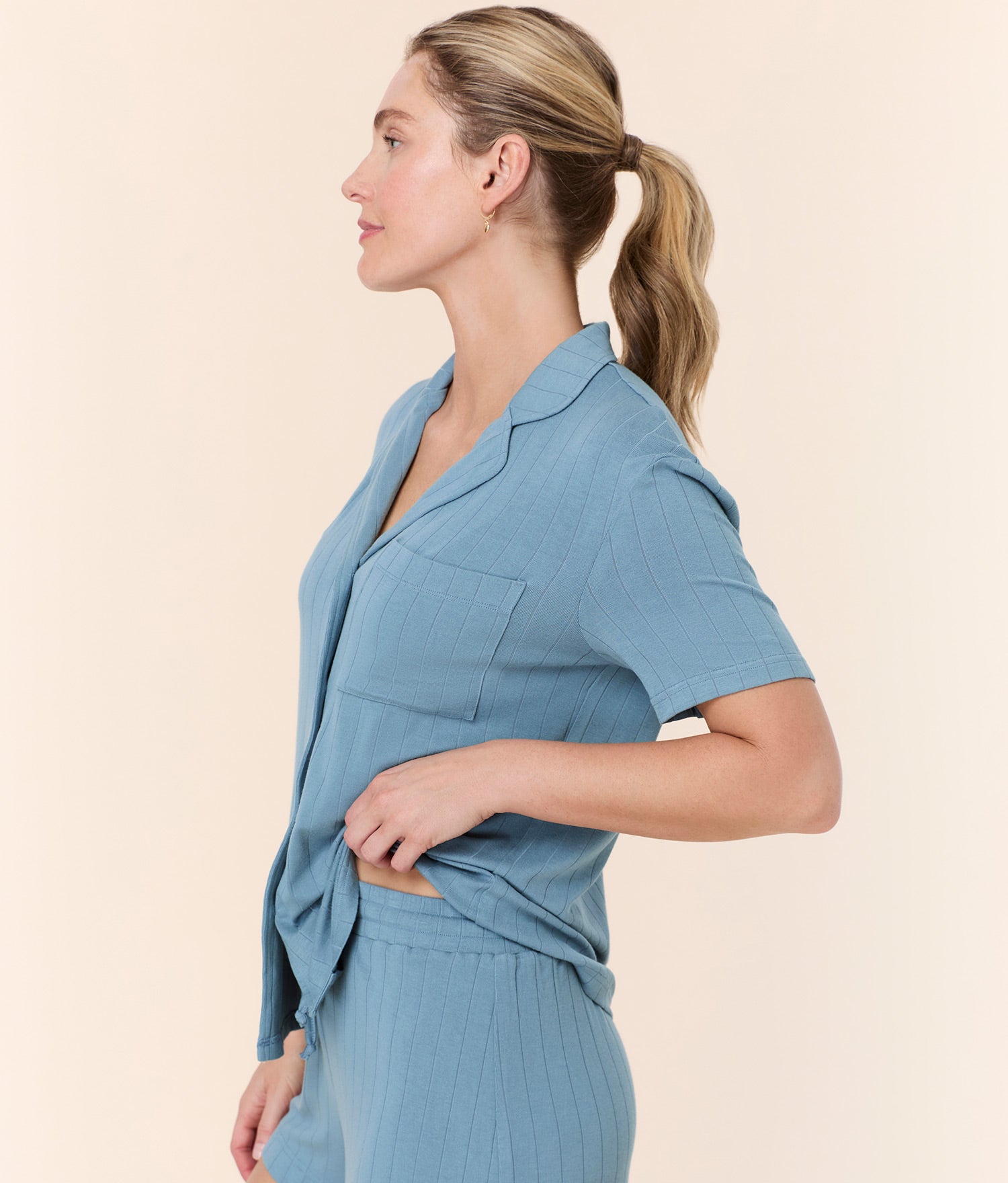 Introducing our Short Sleeve Button Down - a versatile sleep essential. Embrace comfort with a button-down front and a relaxed fit.