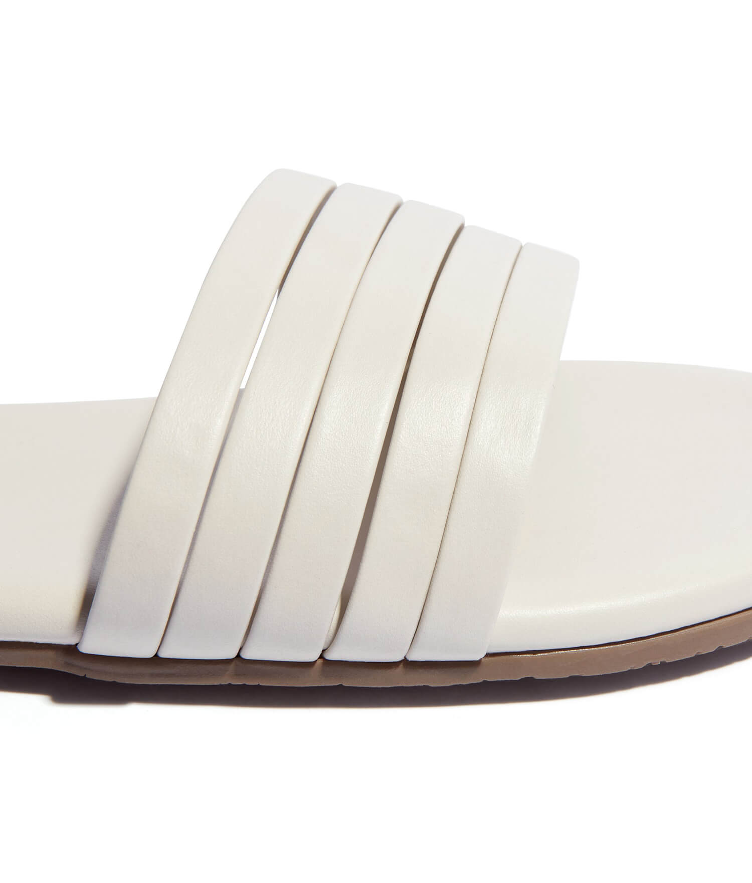 Not just any slide. Five layered straps form a single wide strap. Made from soft Brazilian leather that won’t lose its shape, with an added cushioned insole and rubber outsole for comfort so you can skip the break-in period.