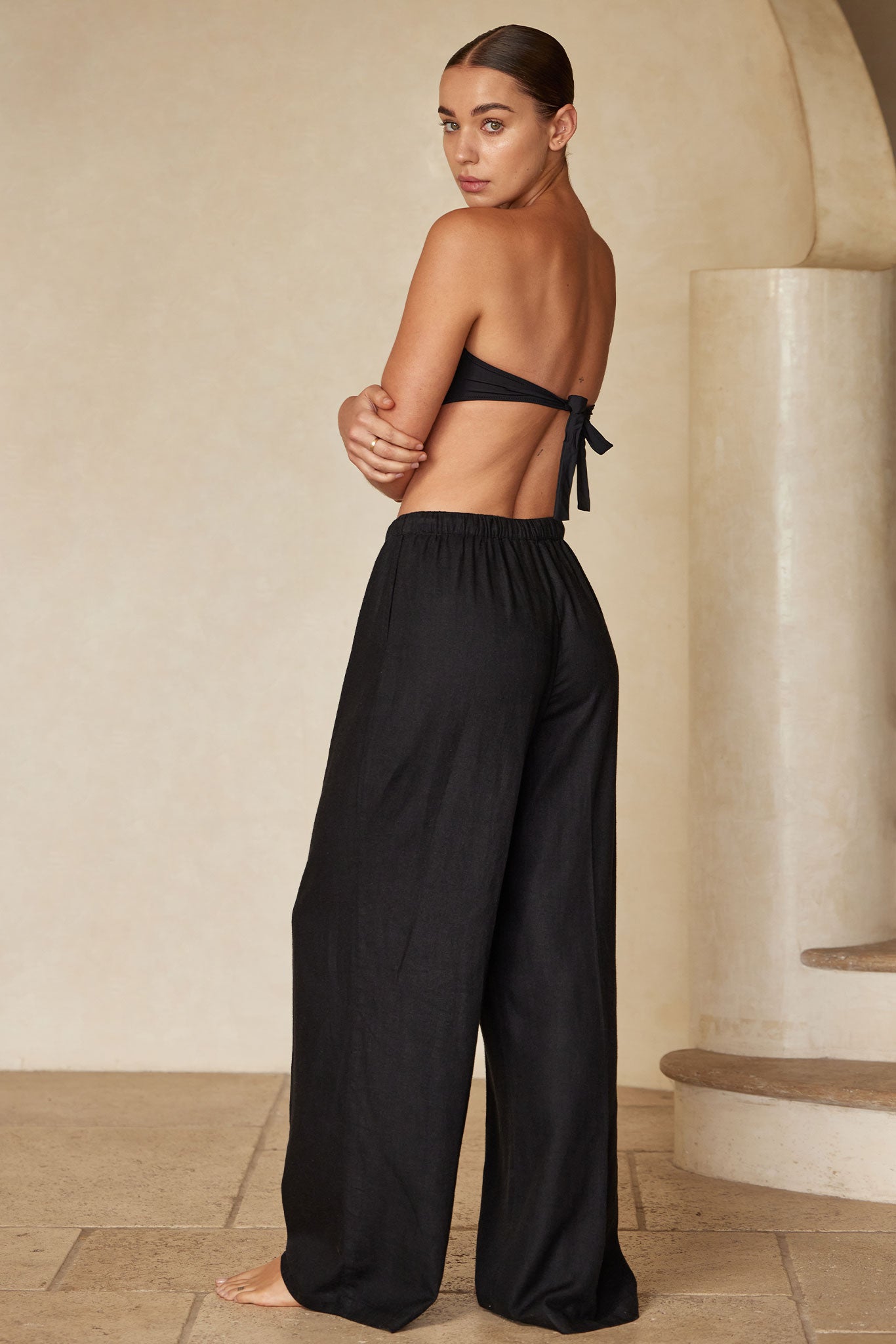 Elevate your beachside elegance with the Tuscany Pant, a luxurious fusion of comfort and style that embodies the essence of leisurely sophistication. These pants feature a drawstring elastic waist adorned with our Monday gold cord ends, that adds a playful touch to your seaside ensemble. These pants evoke an air of ethereal beauty whether you're lounging under swaying palm trees or exploring quaint coastal towns.