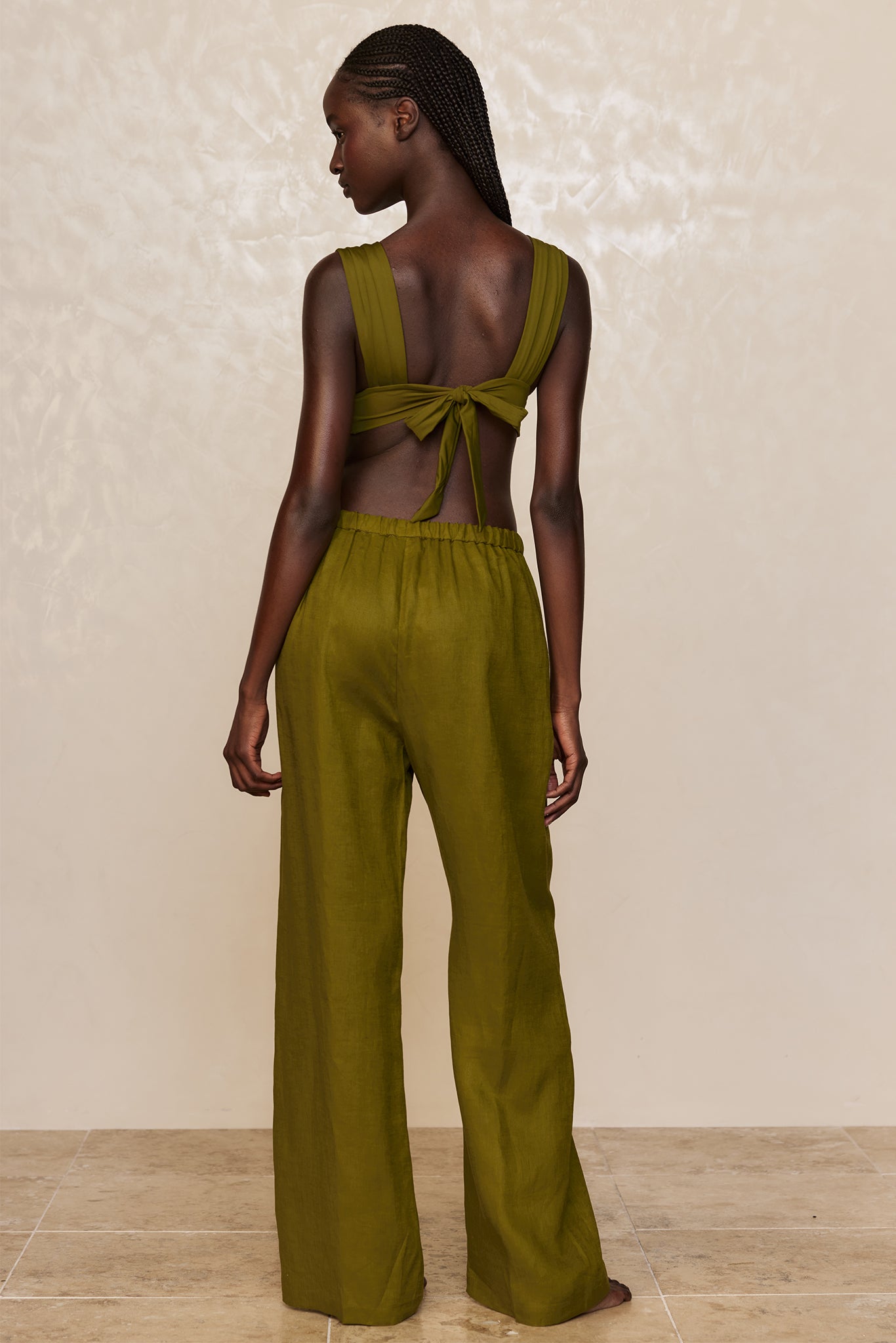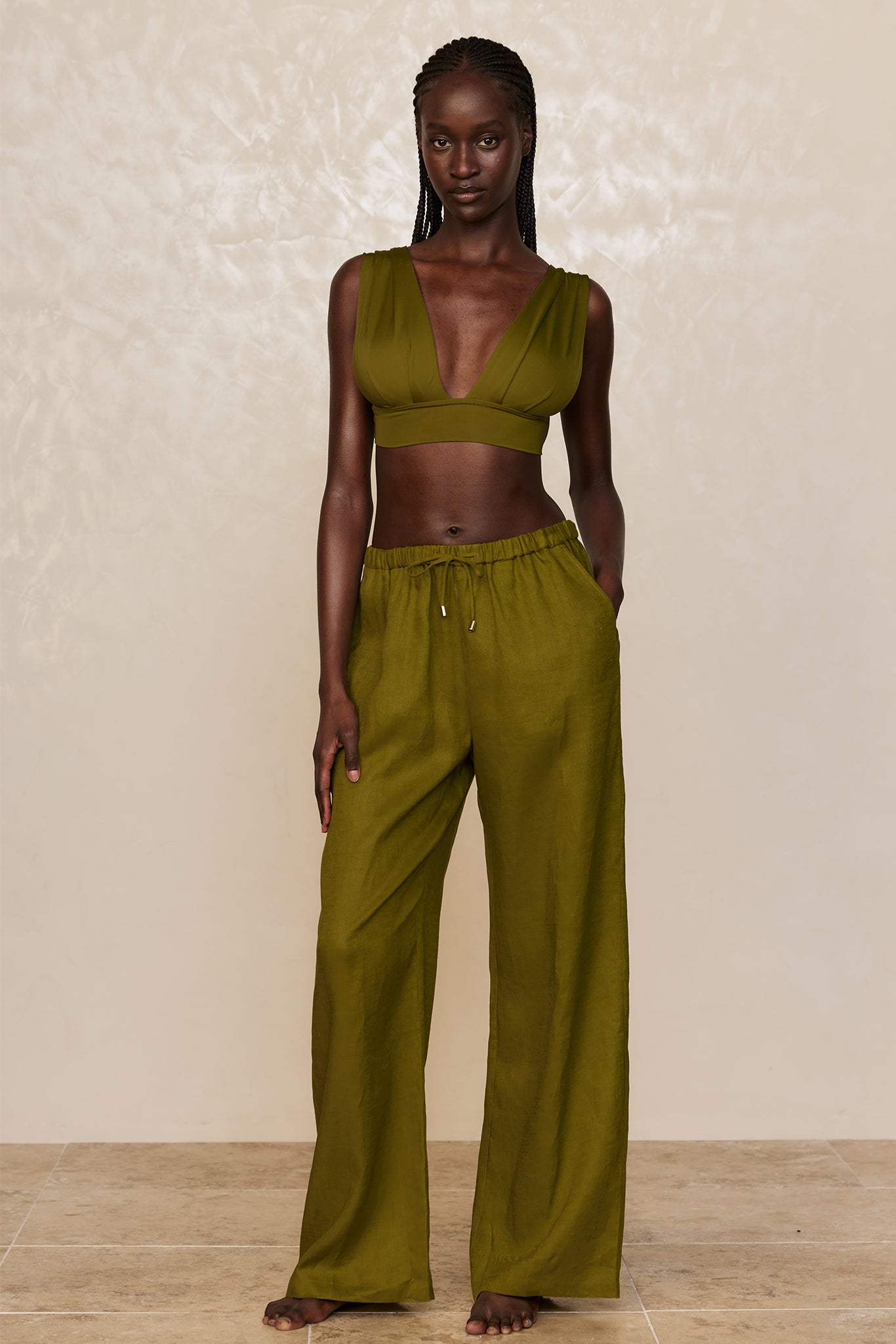 Elevate your beachside elegance with the Tuscany Pant, a luxurious fusion of comfort and style that embodies the essence of leisurely sophistication. These pants feature a drawstring elastic waist adorned with our Monday gold cord ends, that adds a playful touch to your seaside ensemble. These pants evoke an air of ethereal beauty whether you're lounging under swaying palm trees or exploring quaint coastal towns.