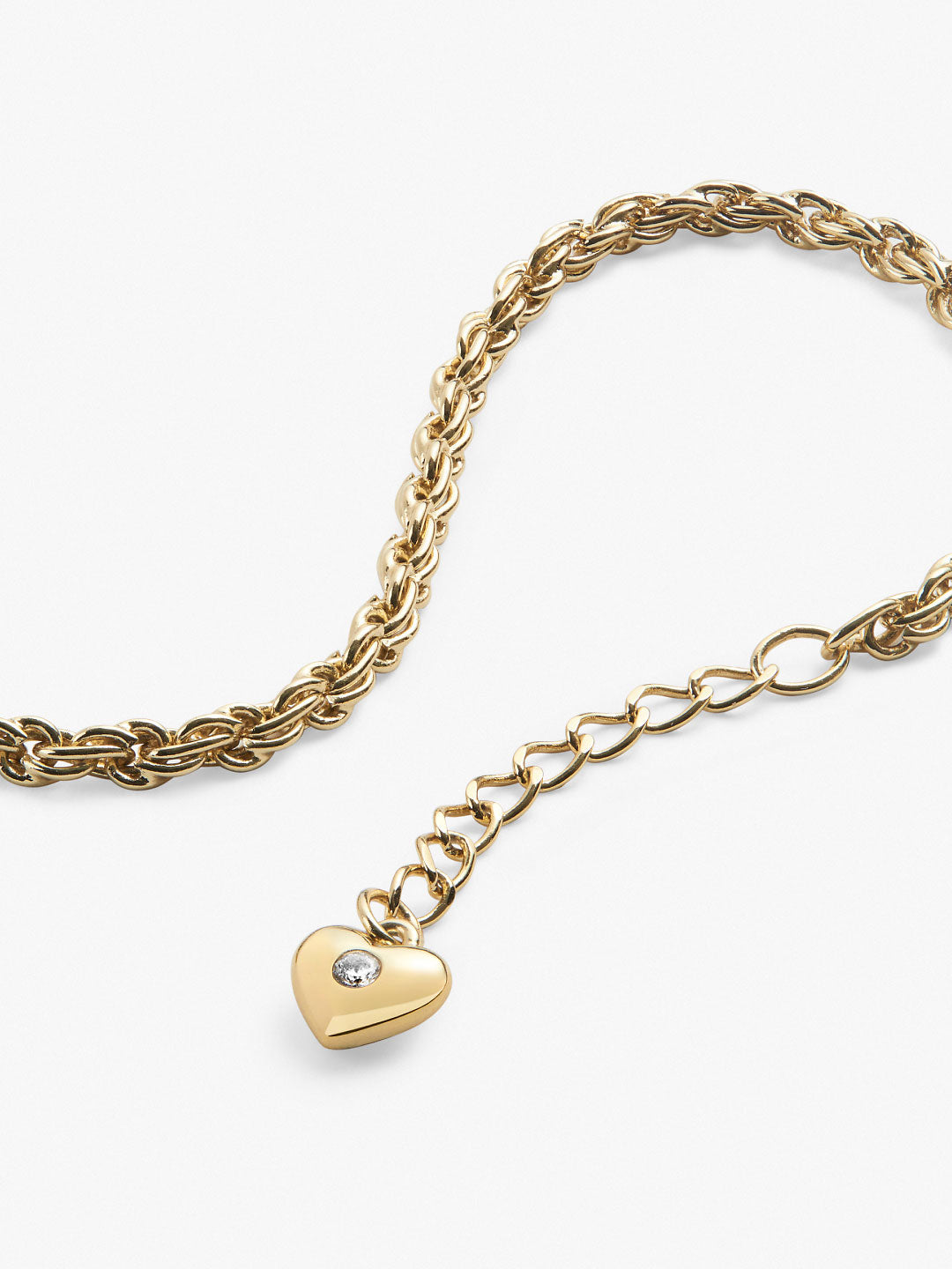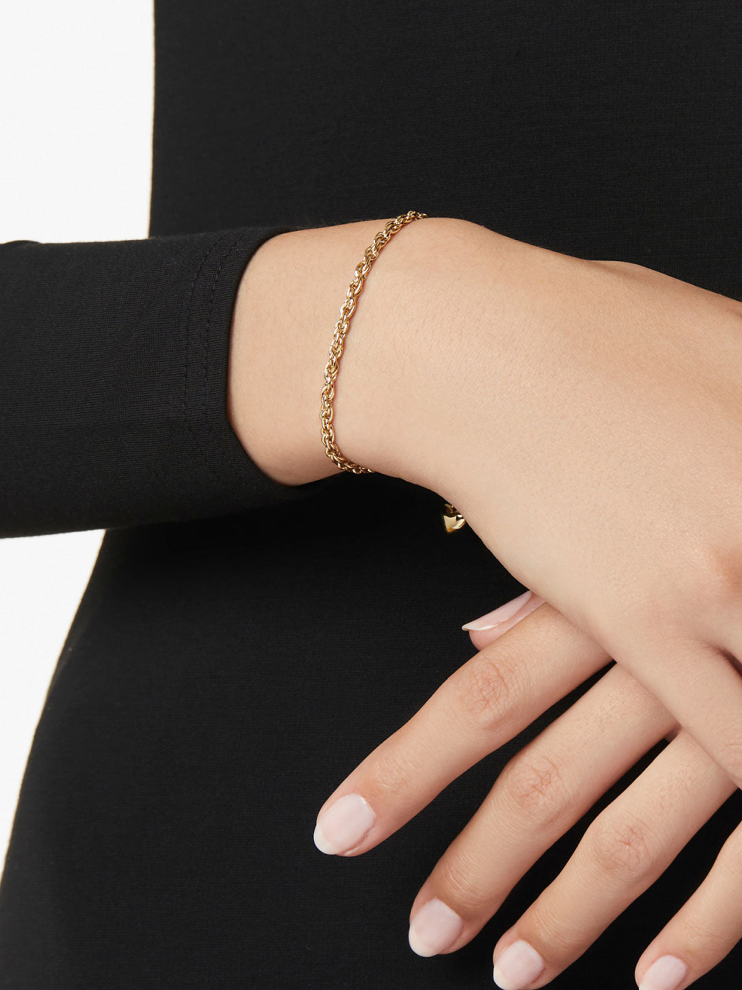 Your wrist is missing this gold twisted chain bracelet with a heart extender co-designed with Lisa Rhee, dancer and YouTube superstar. Carefully handcrafted and dipped in 14k gold, this chain bracelet is feminine and loveable. With adjustable size due to its gorgeous extender, this gold bracelet is as practical as it is stylish.