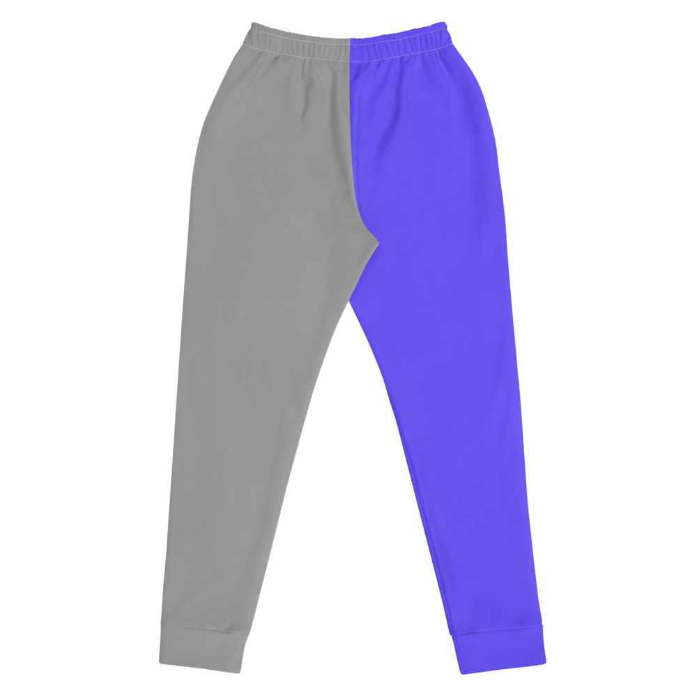 Soft, slim-fitting full-length joggers in two-toned purple and grey.
