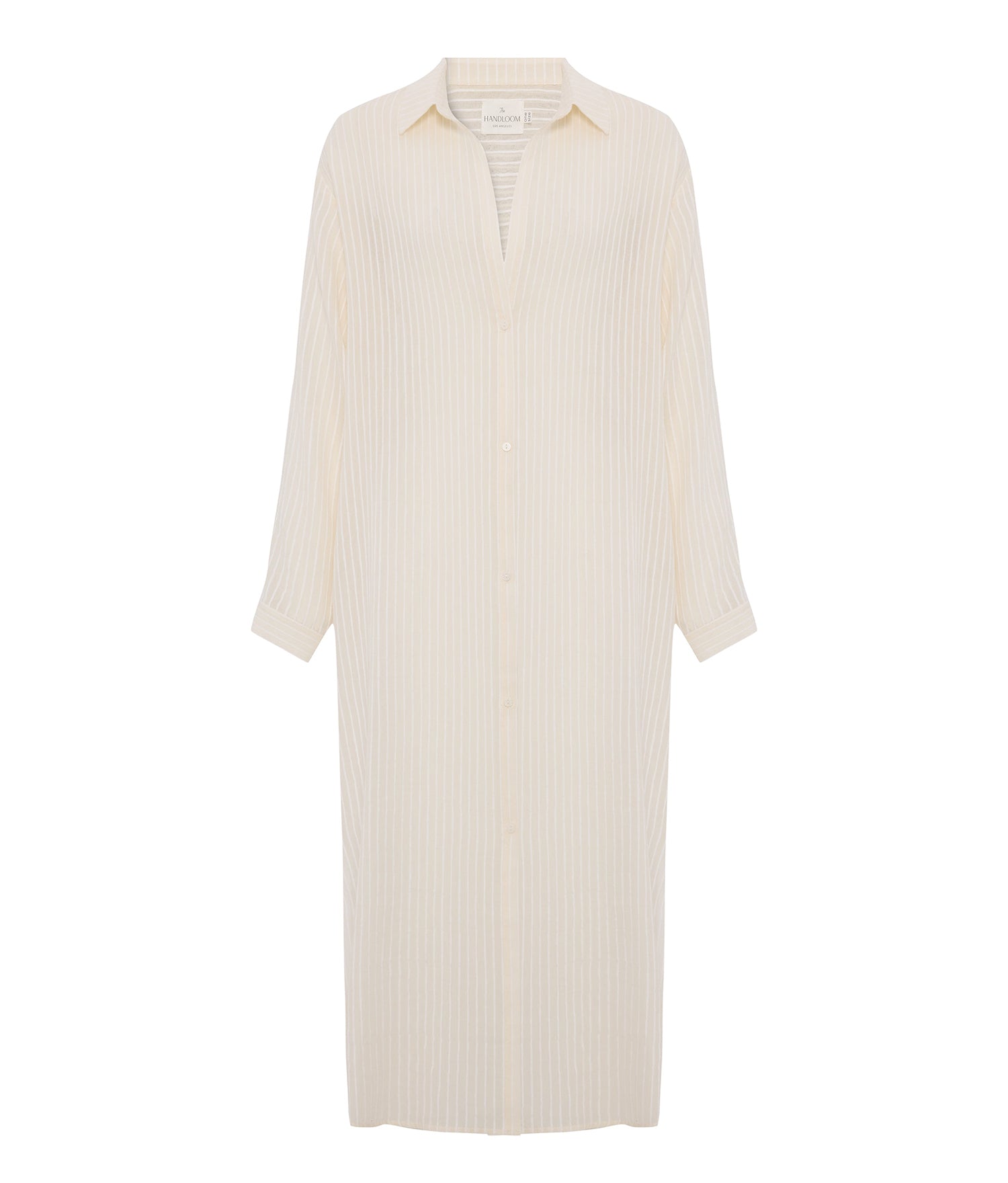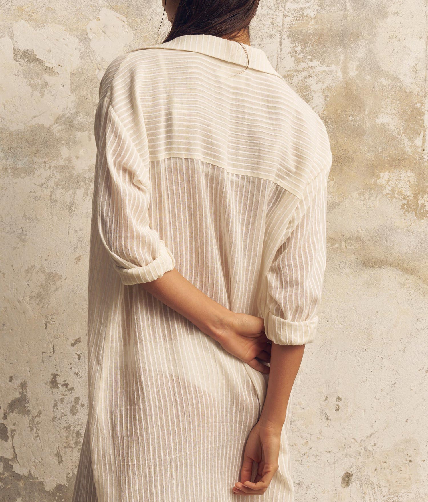 Featuring a button-down front and a relaxed fit, this versatile shirt dress offers effortless layering. Crafted from 100% Turkish cotton with soft, hand-loomed striped fabric, it can be worn open-front over swimwear or buttoned up as a chic beach cover-up. With a classic collar and rollable sleeves, it’s an essential addition to your summer wardrobe, perfect for beachside lounging or strolling through vacation days in style.