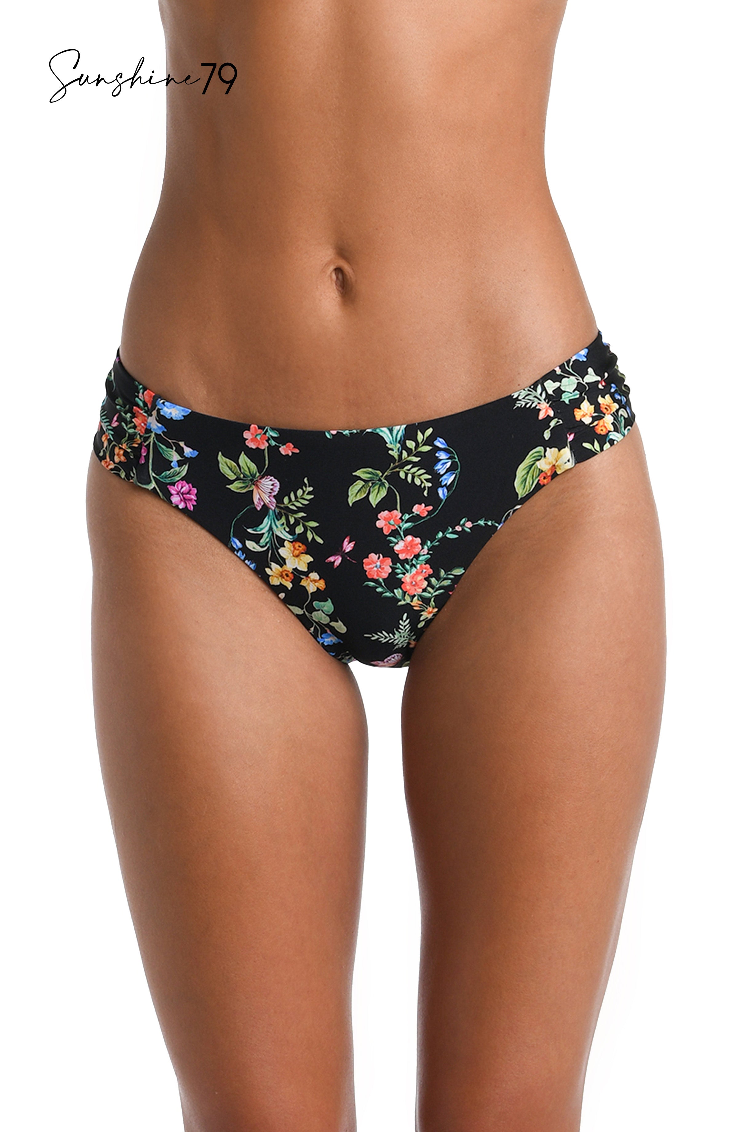 This swimsuit from Sunshine 79 showcases a captivating black wildflower print that exudes both a sense of mystery and a connection to nature. The delicate yet striking floral design against the black backdrop adds an element of elegance and intrigue to your beach-ready ensemble.